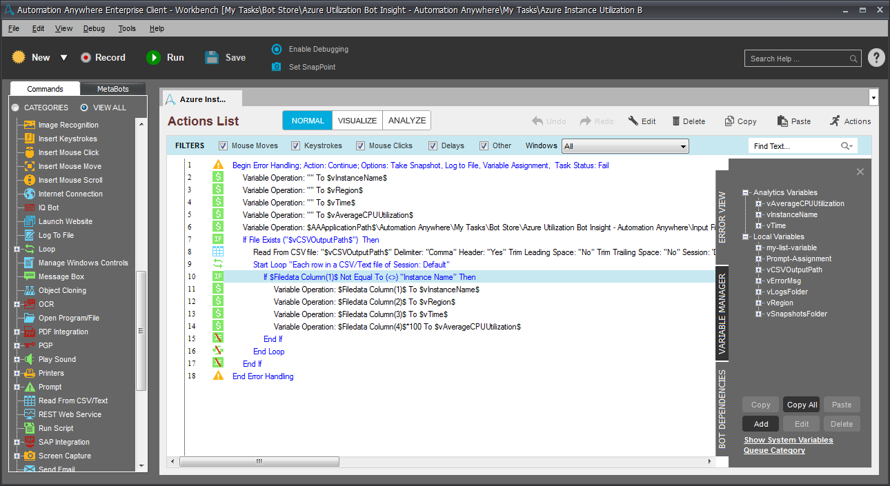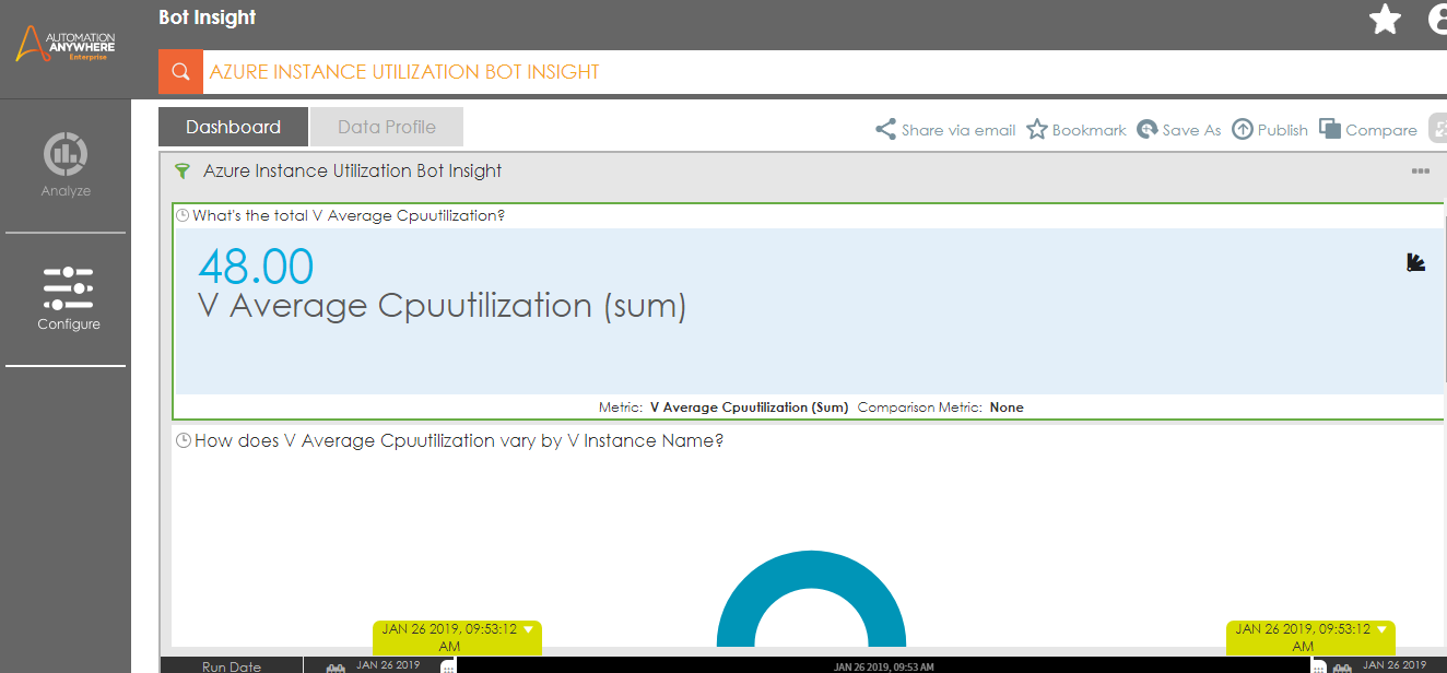 - Easy to use and integrate in new tasks without any technical supervision. Bot execution results in auto generated dashboard for Azure Instance Utilization process showing valuable metrics to the end user.