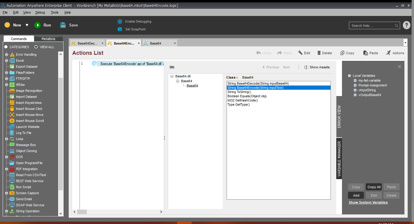 - Inputs: Decode: Takes a Base64 string and returns the decoded string.