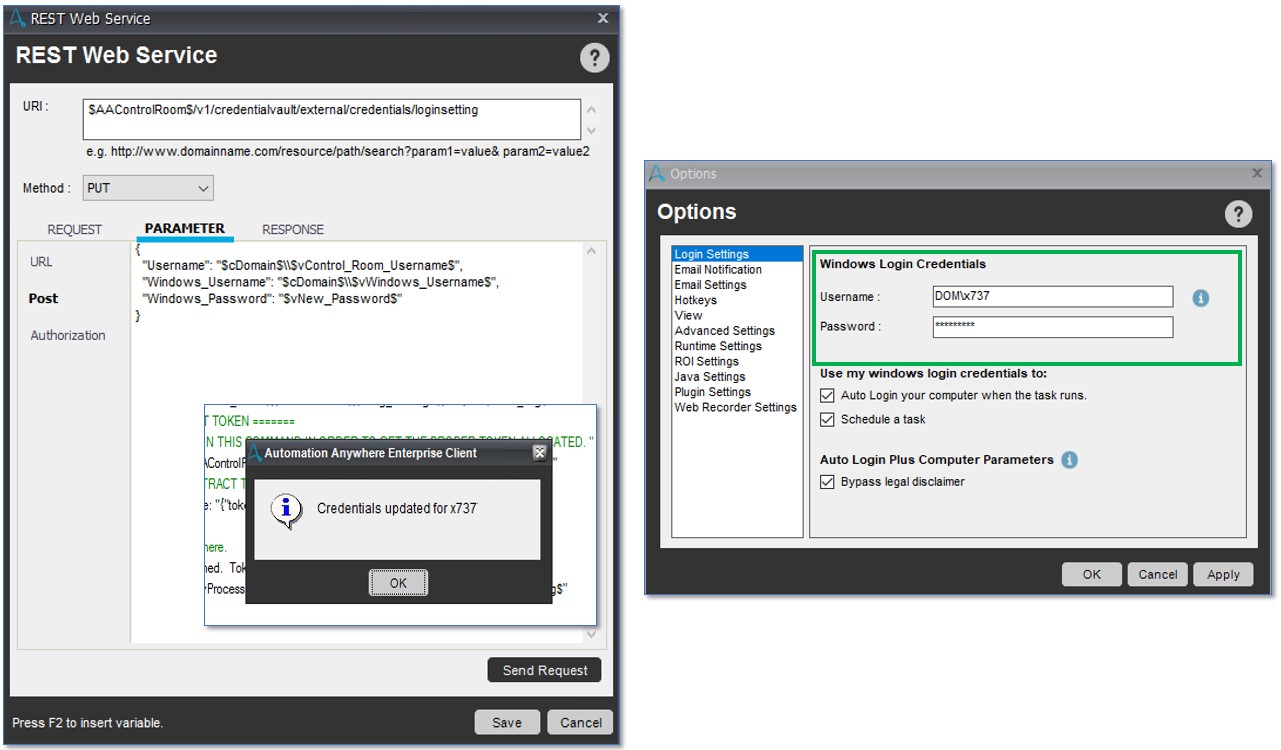 - Interact with Credential Vault API to update a username's Auto Login settings password.