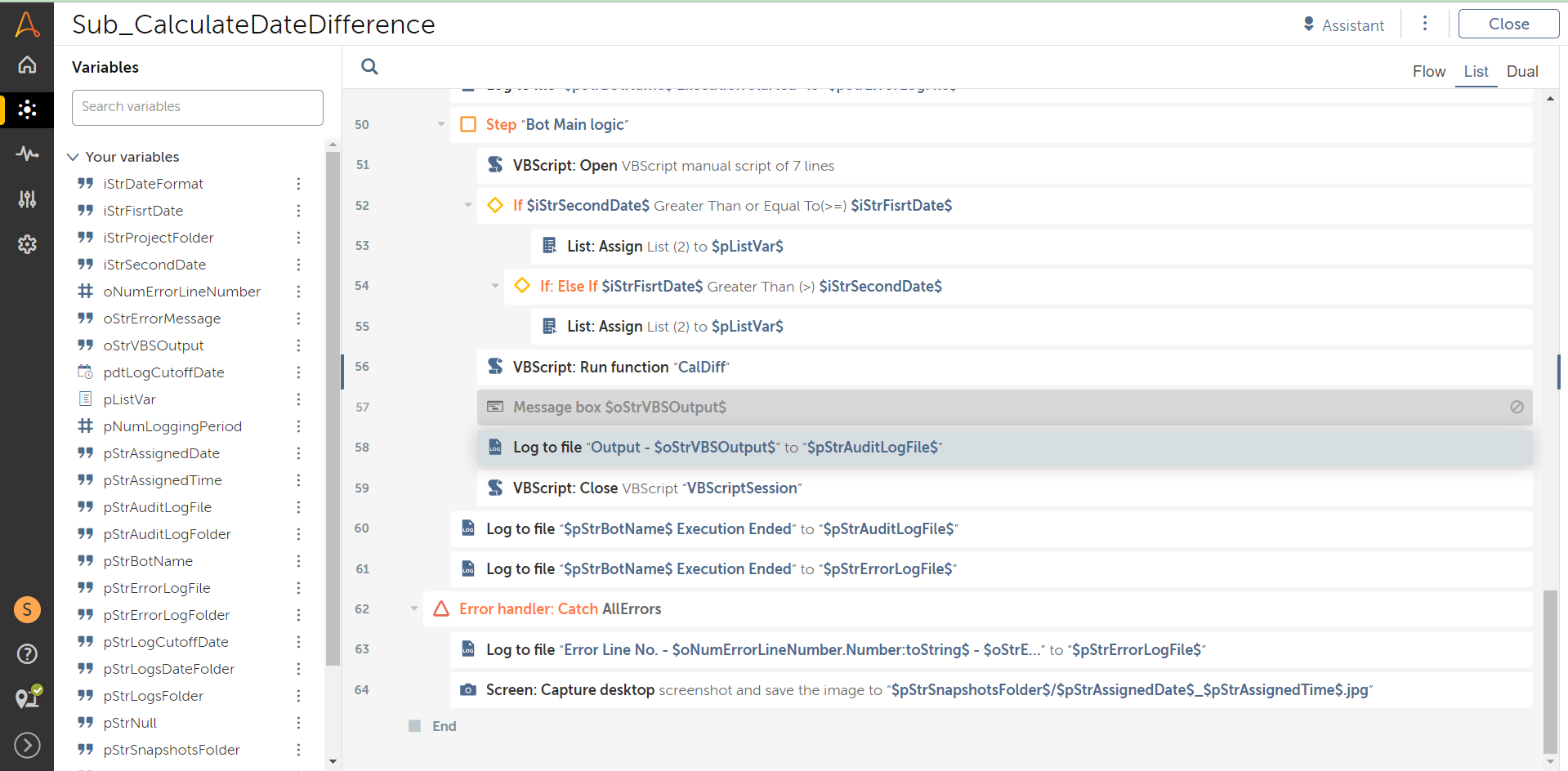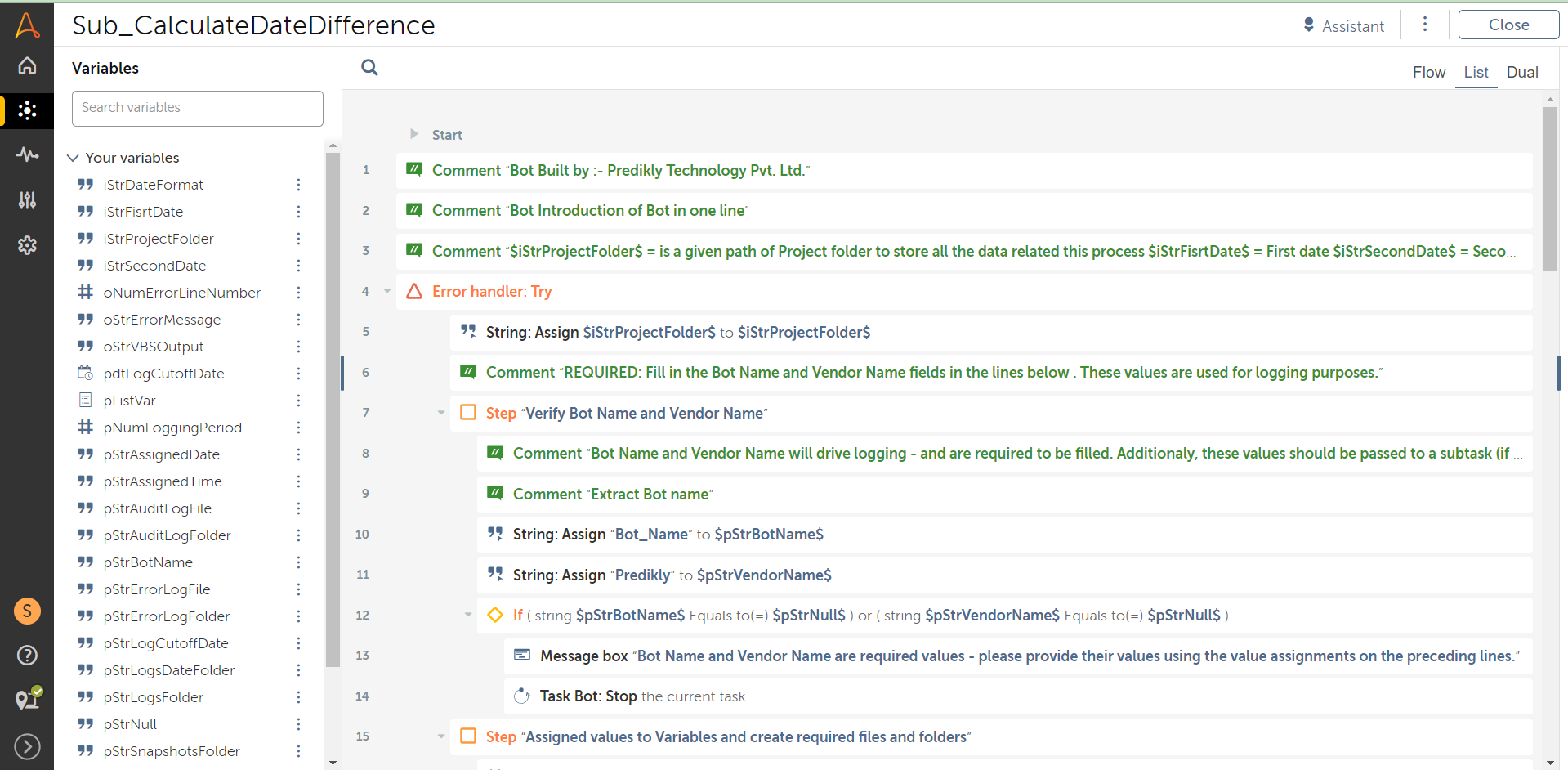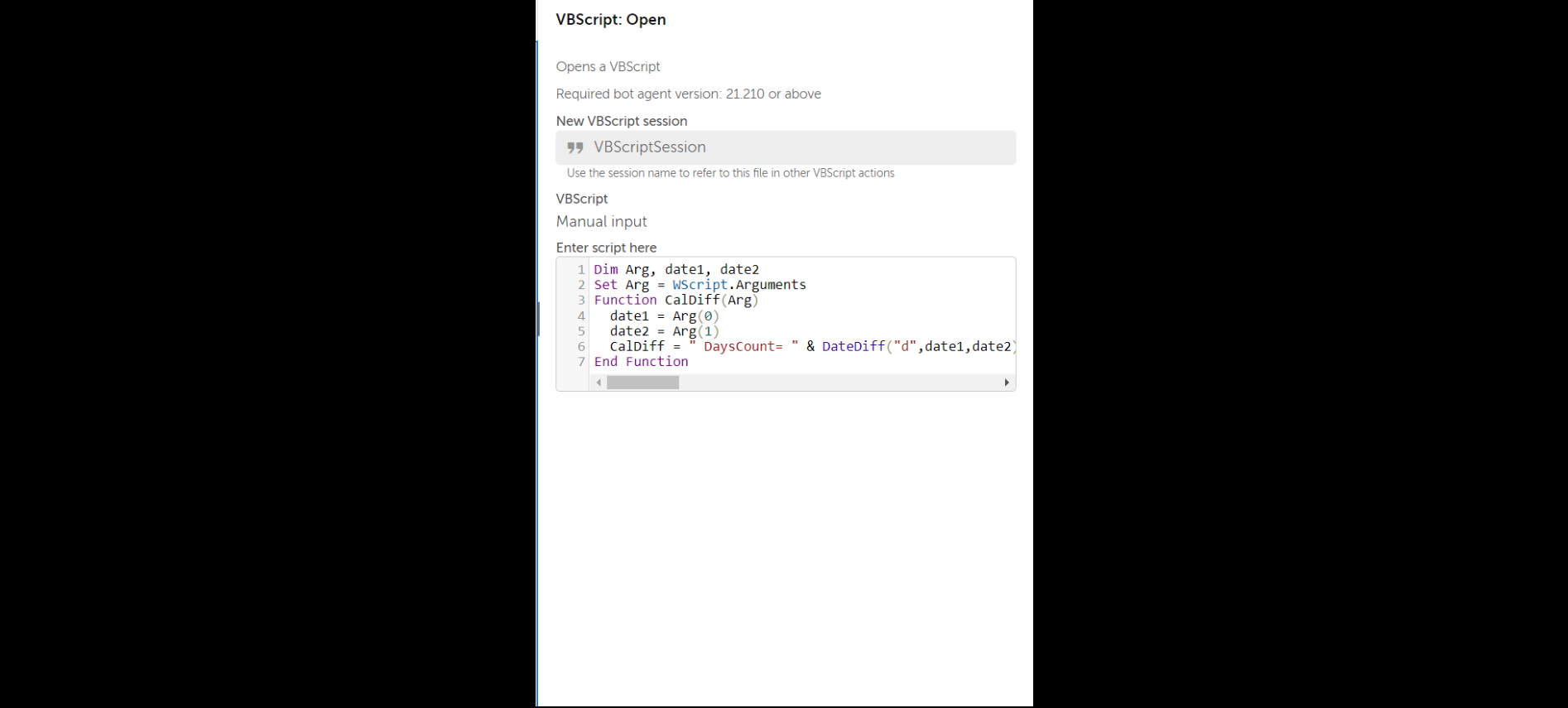 The bot expects the two valid dates in any format. The inputs will be passed to VBScript which will return the output in a number of Years/ Months/ Days/ Hours/ Minutes/ Seconds. Users can leverage this bot as per the unit needed by him/her. All the input details are mentioned in the Readme files. Audit and Error logs are maintained.