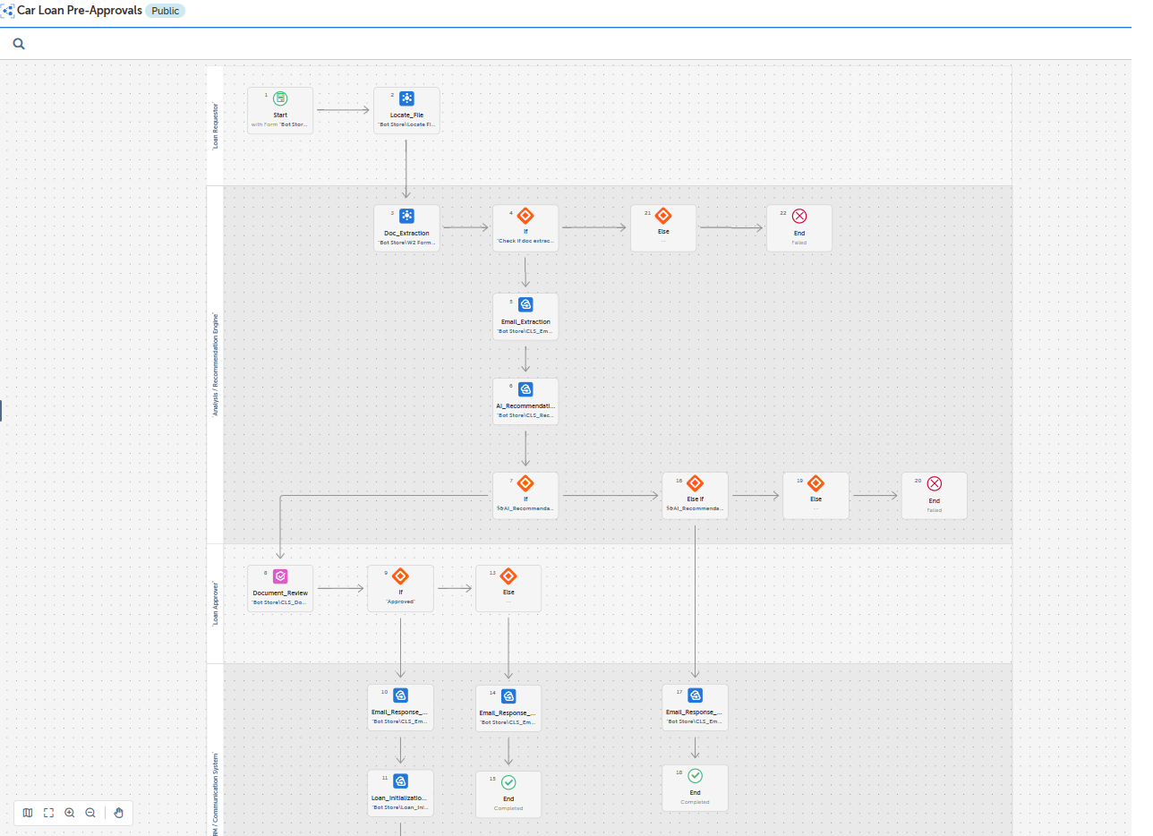 This template lets you build an end-to-end process automation to efficiently and quickly pre-approve car loan requests.