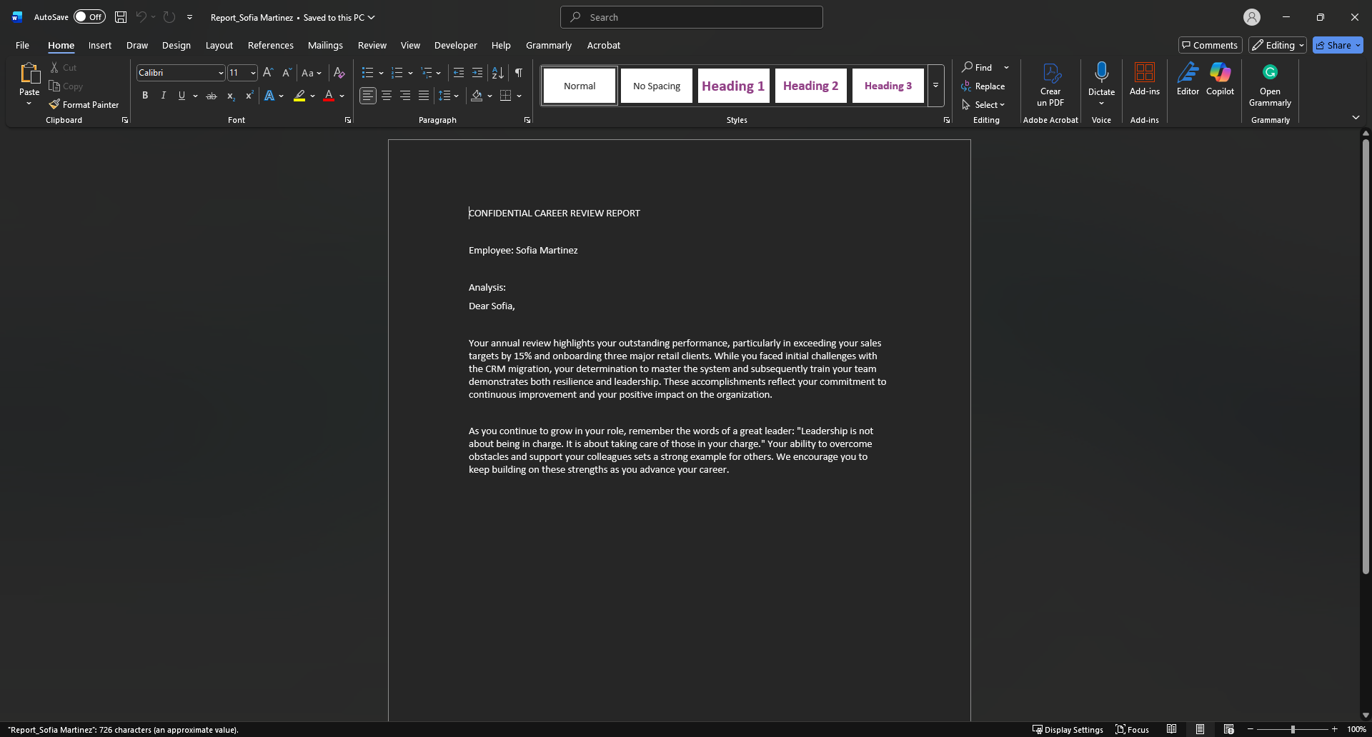 - Speed: Reduces review processing time from ~20 minutes to under 30 seconds per employee.