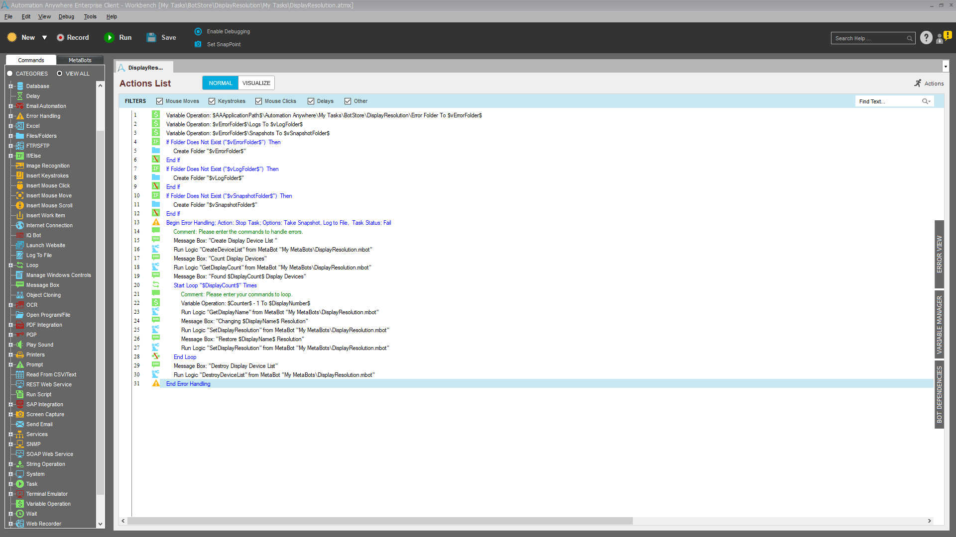 - This metabot solves a very common problem where the original bot is resolution dependent and was recorded with a different resolution than the system on which the bot is being run. If you know the resolution under which your bot was recorded, then you can switch to the bot recorded resolution by calling the metabot APIs and then switch back to the bot host resolution at completion. Otherwise, it would mean re-recording the whole bot for the new resolution which is often impractical.