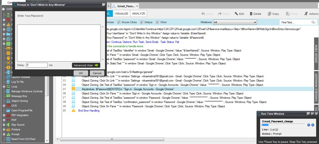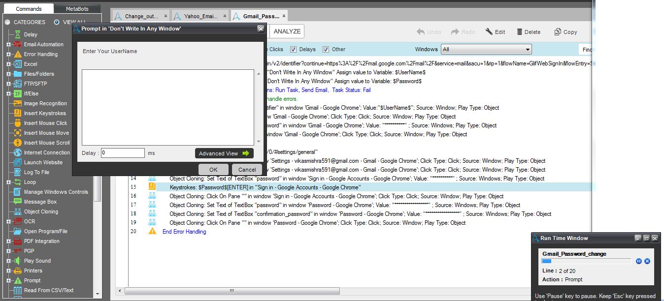 This bot automatically changes the Gmail password after login. User has to Enter the Username and Password so that it will login to Gmail. The user also has to enter the password that he or she wants to change to.