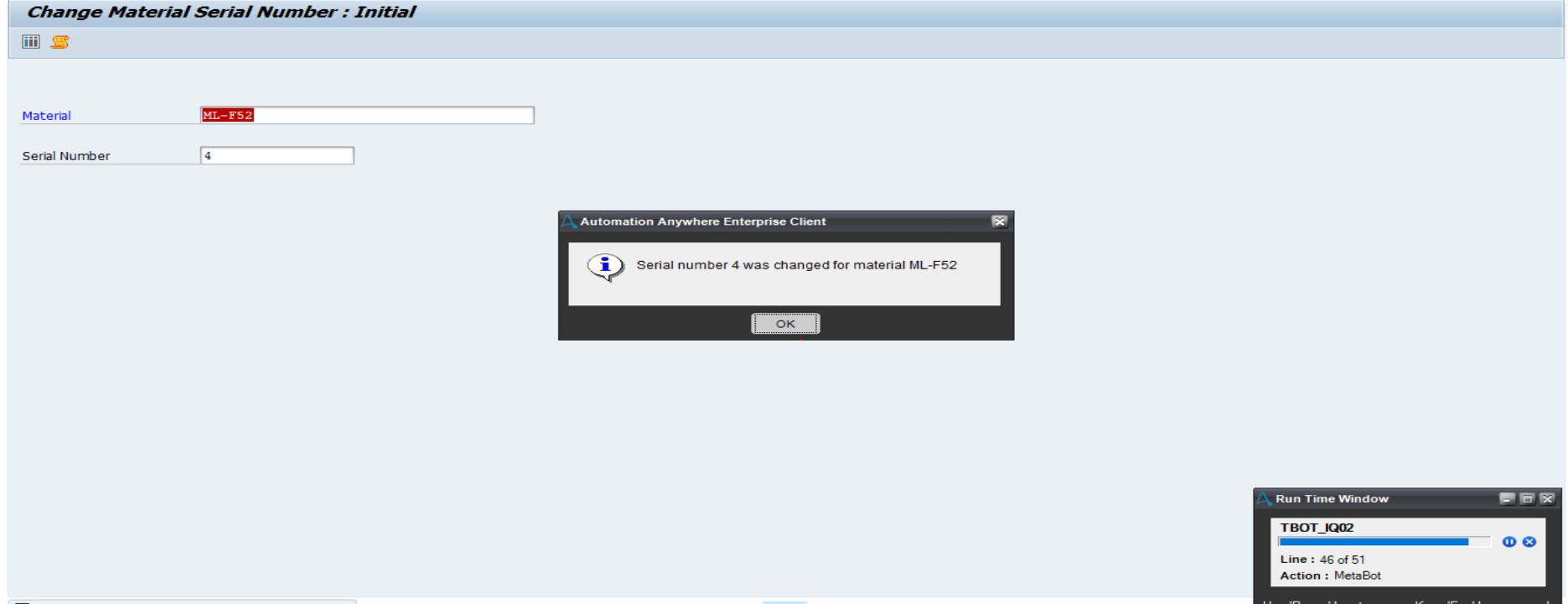 - Input Files: "Change material serial number-IQ02.xlsx ", "Credentials.xlsx"