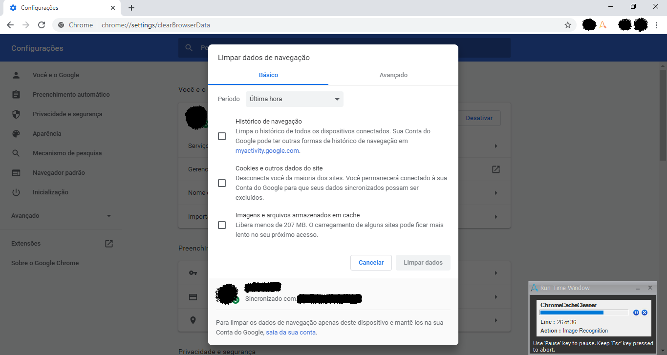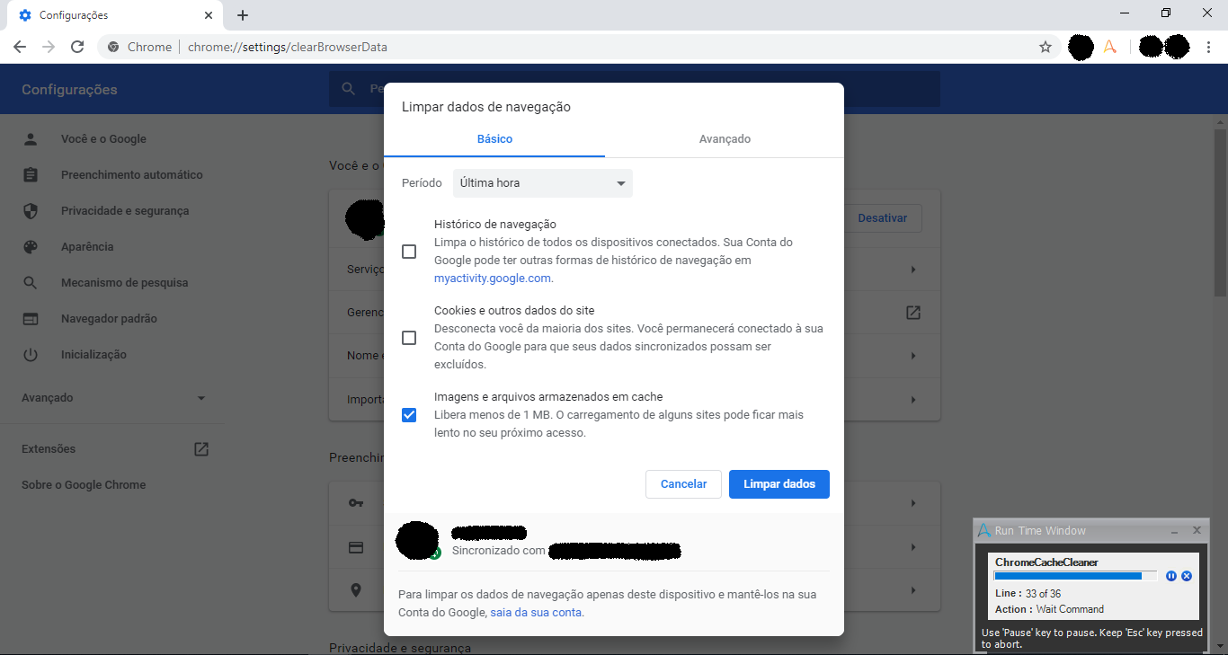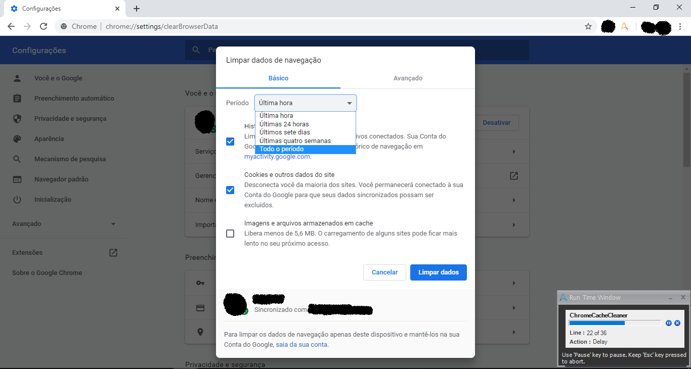 Esse bot limpa o cache do navegador Google Chrome na linguagem pt-br primariamente.