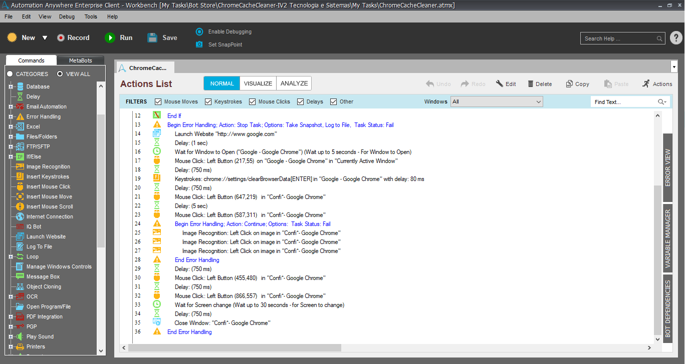 Esse bot tem como função principal limpar o cache do navegador Google Chrome automaticamente, assim evitando que ocorram erros como lentidão de carregamento devido ao mesmo, acelerando a abertura de sites e fazendo com que eles carreguem corretamente evitando também assim possíveis erros que poderiam ser confundidos por erro de código.