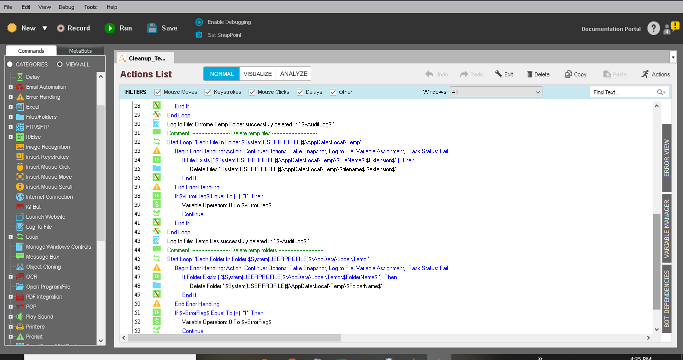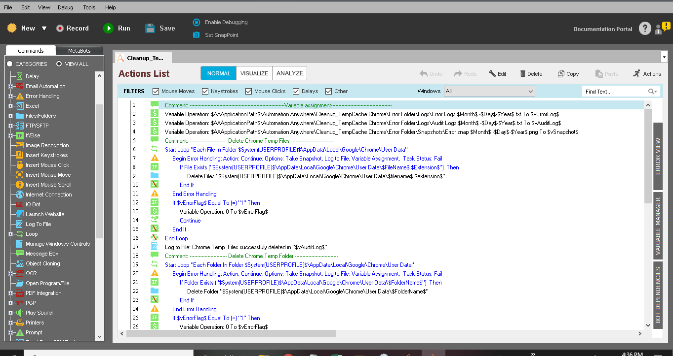 Google Chrome is widely used browser for RPA Processes. Every time when process is getting executed on Chrome it creates cache and temp files. This Bot will clear temp files in %temp% folder and cache, history, cookies so that the new browser instance starts fresh.