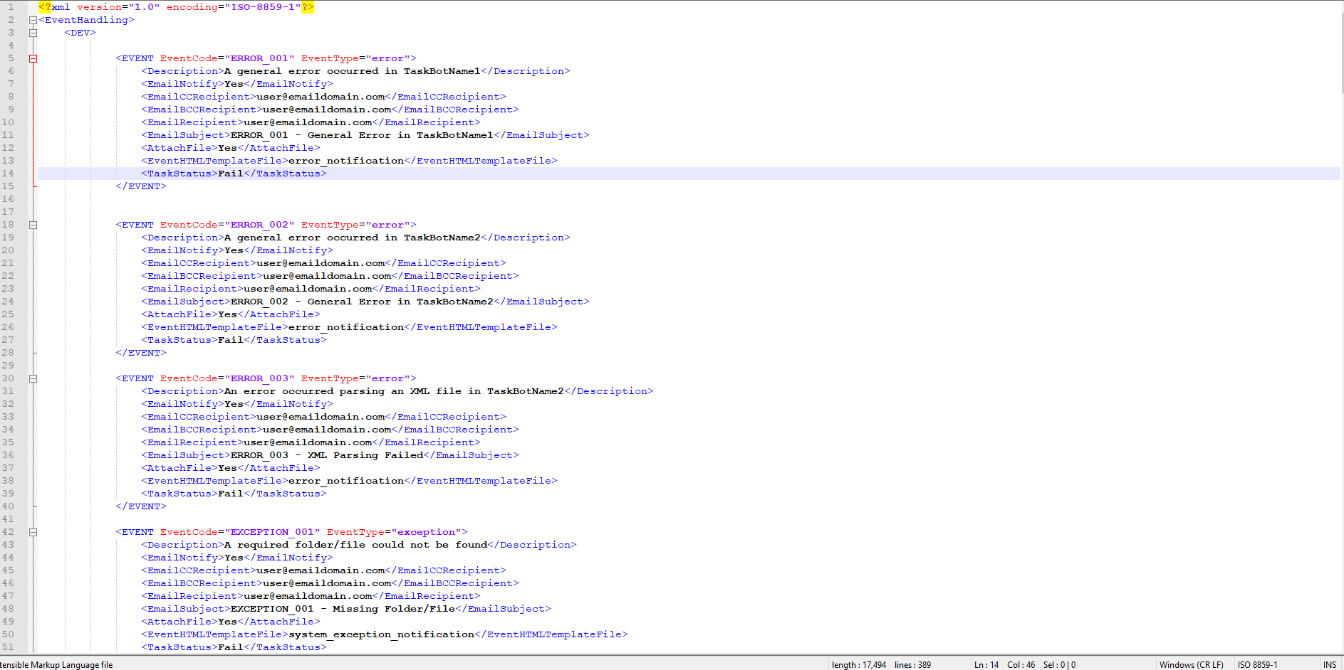 3. Definition of ‘exceptions’ is embedded in an XML file, which could be defined early in the bot development lifecycle, and change to those definitions managed throughout the bot’s lifecycle.