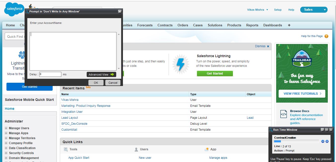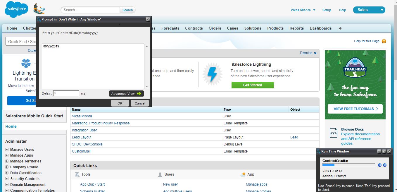 This bot will login to Salesforce and create a contract by taking the details using the prompt.