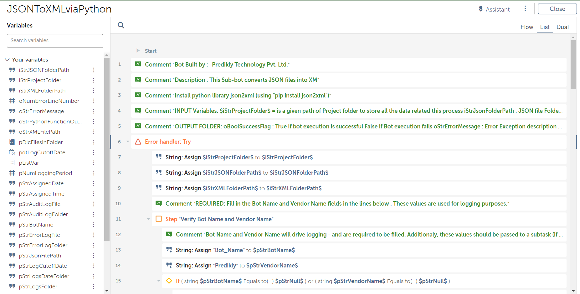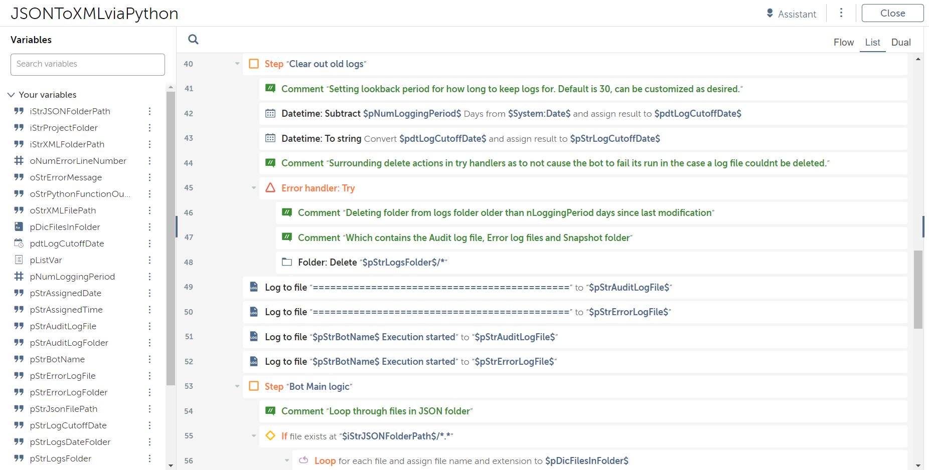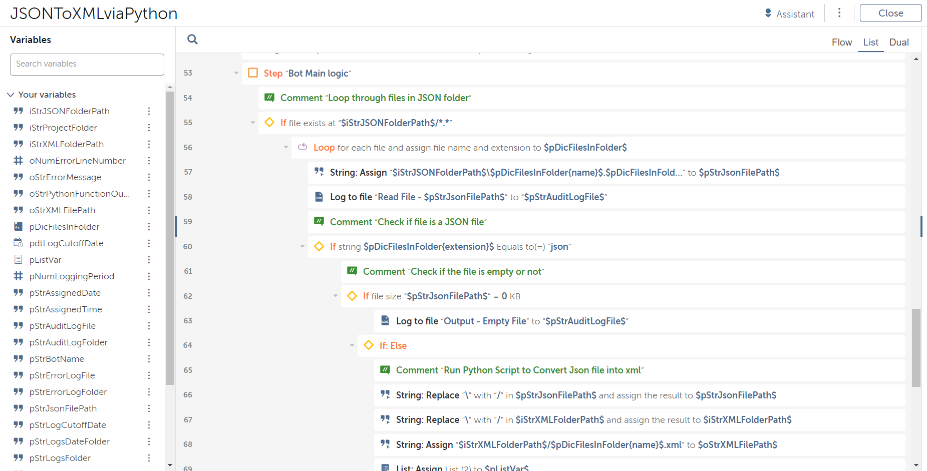 This bot can be used to convert a JSON file to an XML file
