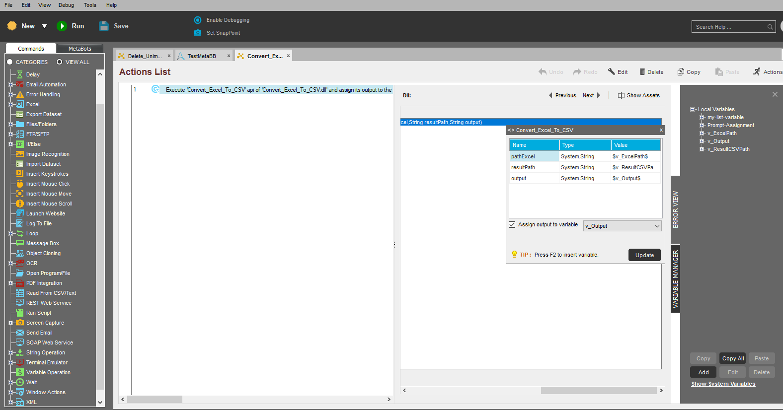 - Reliable - with the reliability of this bot, developers can accelerate bot building when Excel to CSV conversions are required