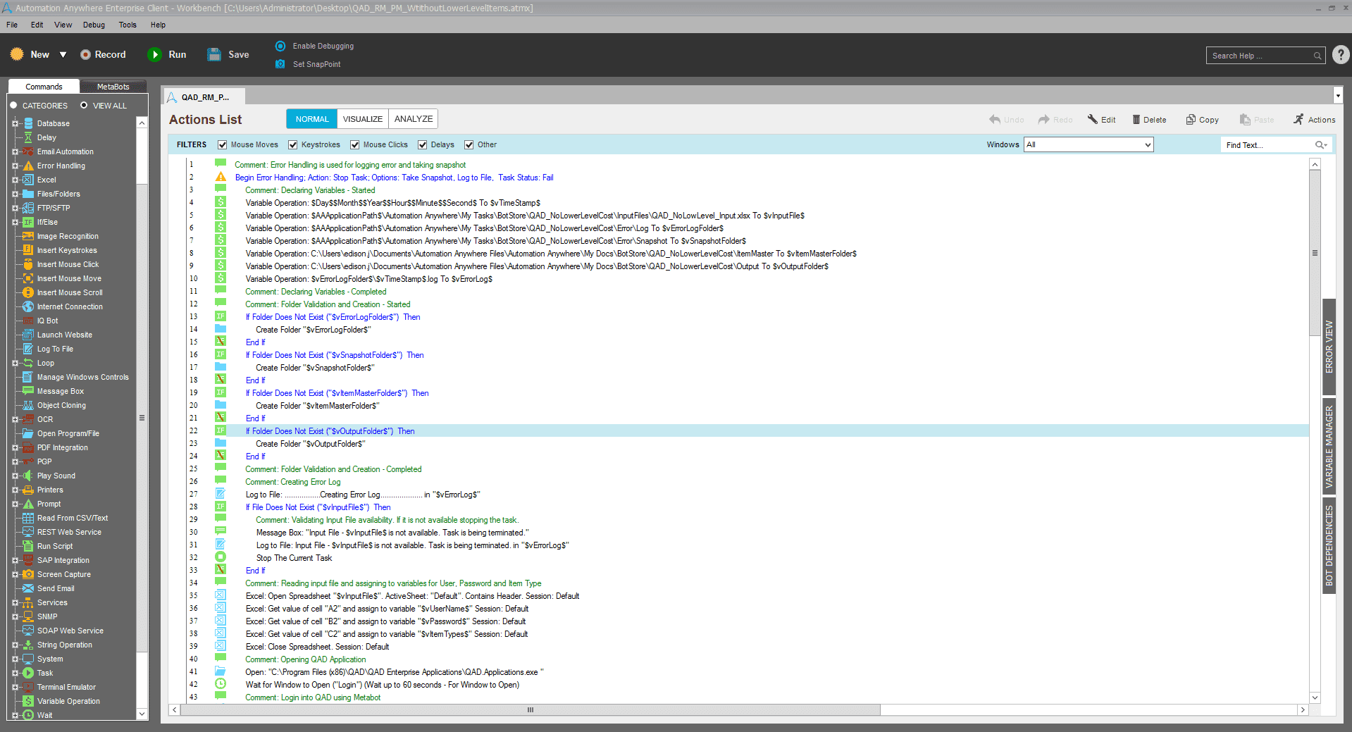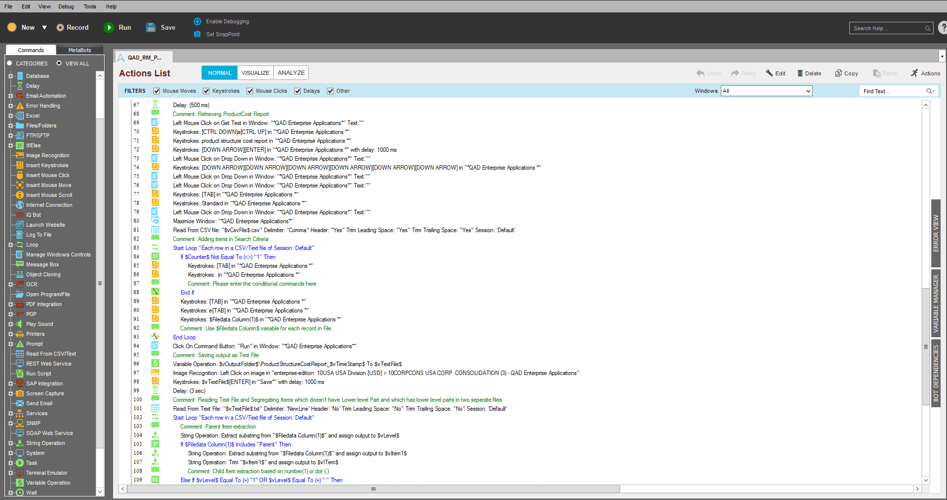 This bot logs into QAD and fetches raw material items which do not have lower level cost. The proactive detection of these situations helps avoid variances.