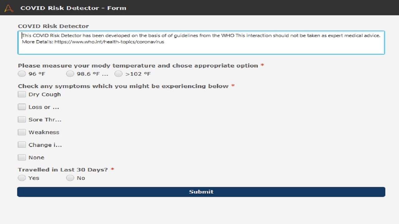 The bot takes input from individuals and helps in assessing for COVID-19 risk.