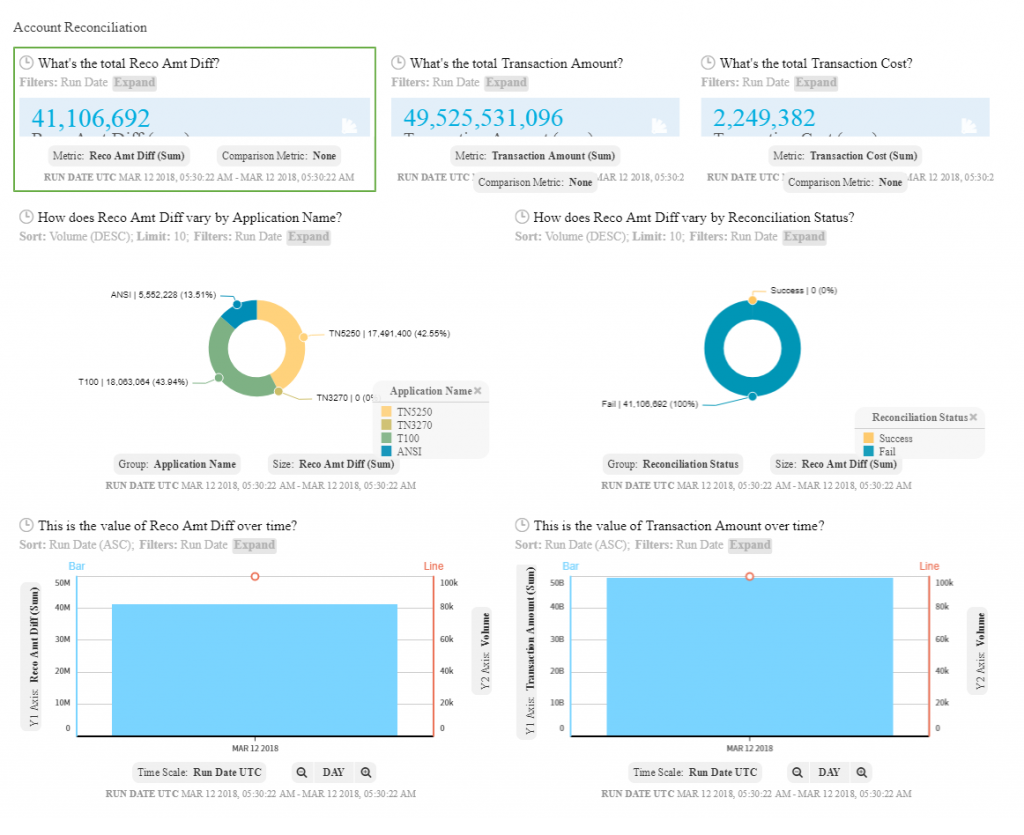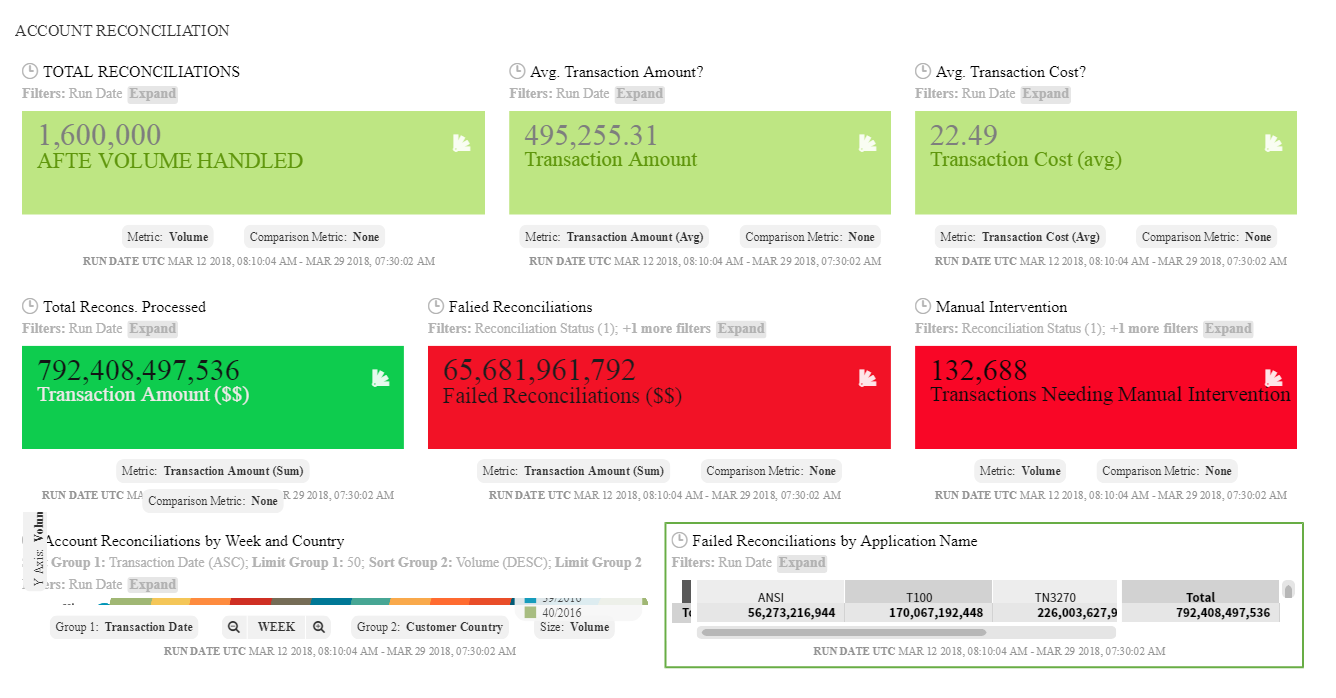 - Bot execution results in auto generated dashboard for Account Reconciliation process showing valuable metrics to the end user