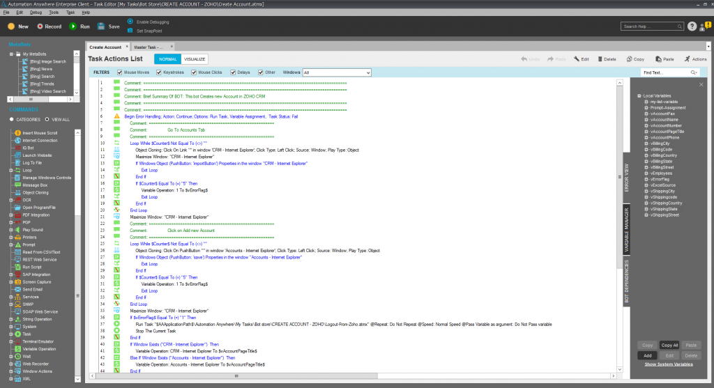 This bot is designed to login to Zoho, go in the accounts tab, and create a new account.