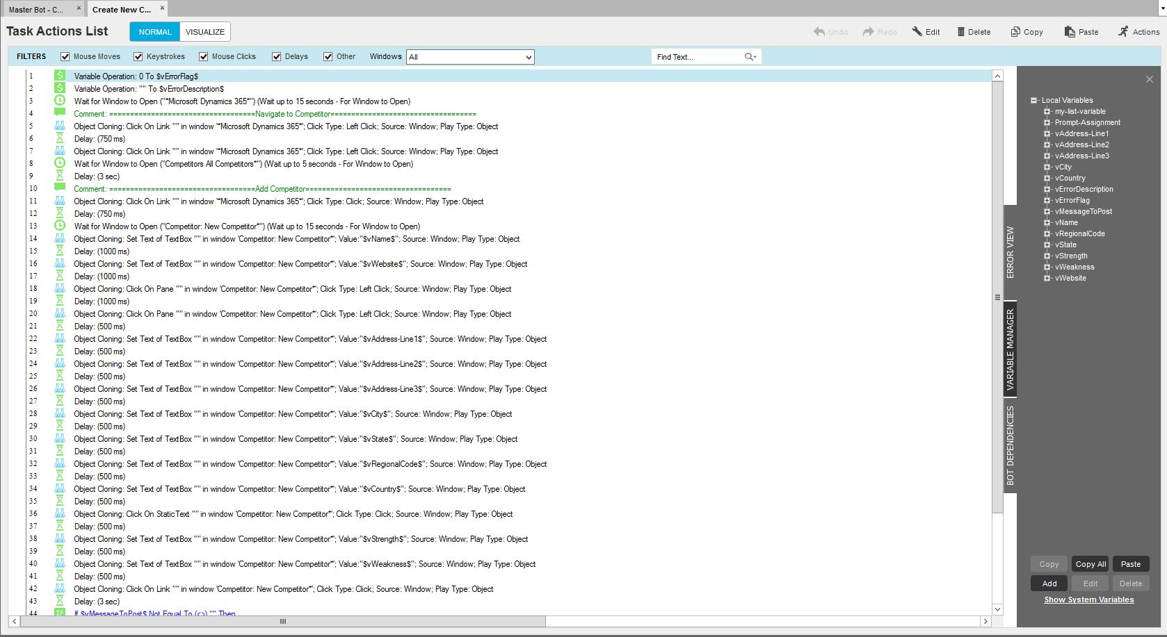 Automate the process of creating competitors in Microsoft Dynamics. Provide basic login details and the required information to create a competitor - and the bot will take care of the competitor generation process for you.