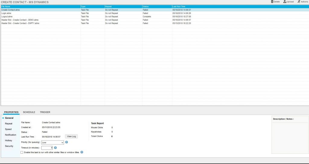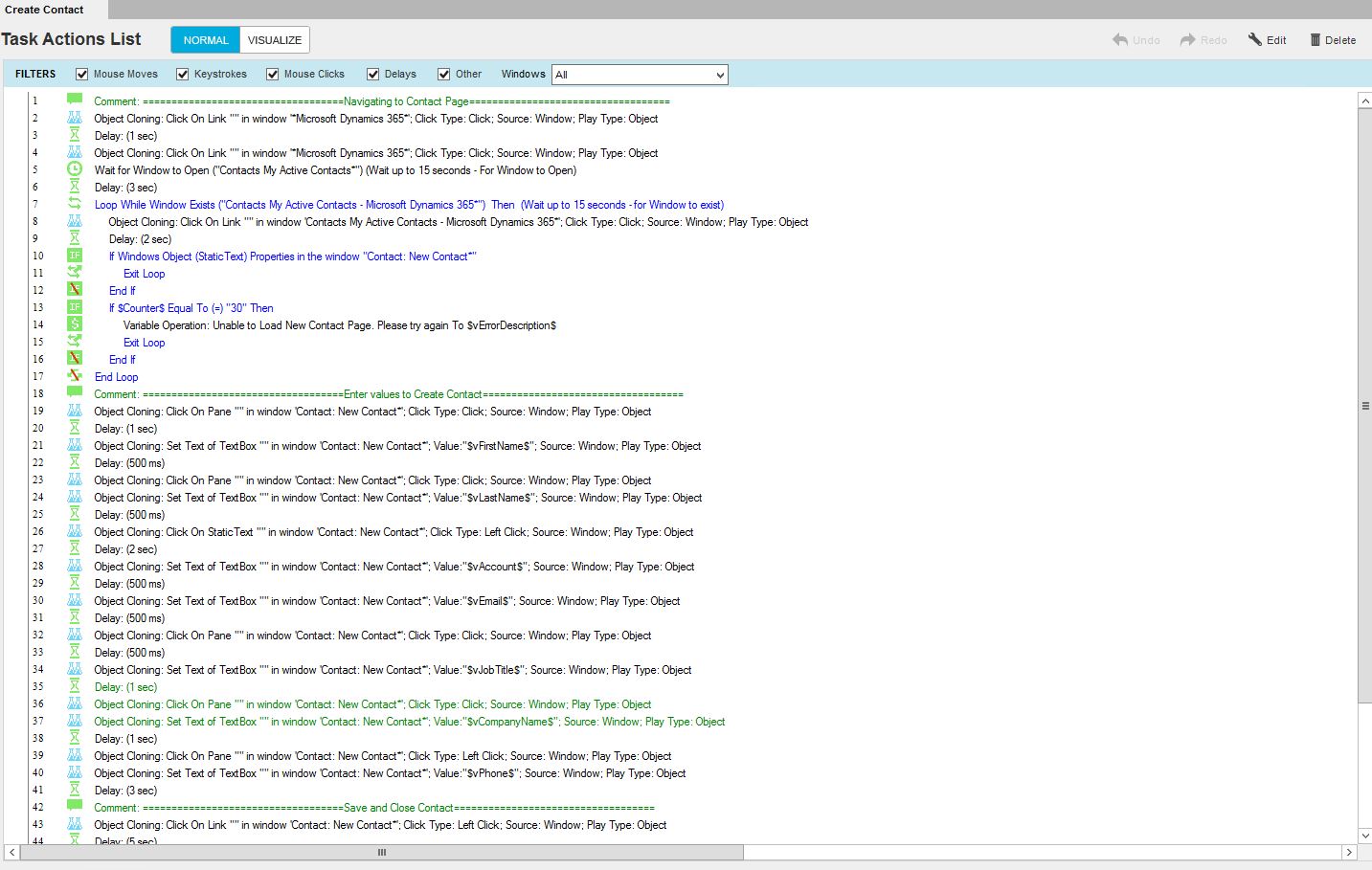Automate the process of creating a new contacts in Microsoft Dynamics. Provide credentials and details related to the contact to automate the process end to end.