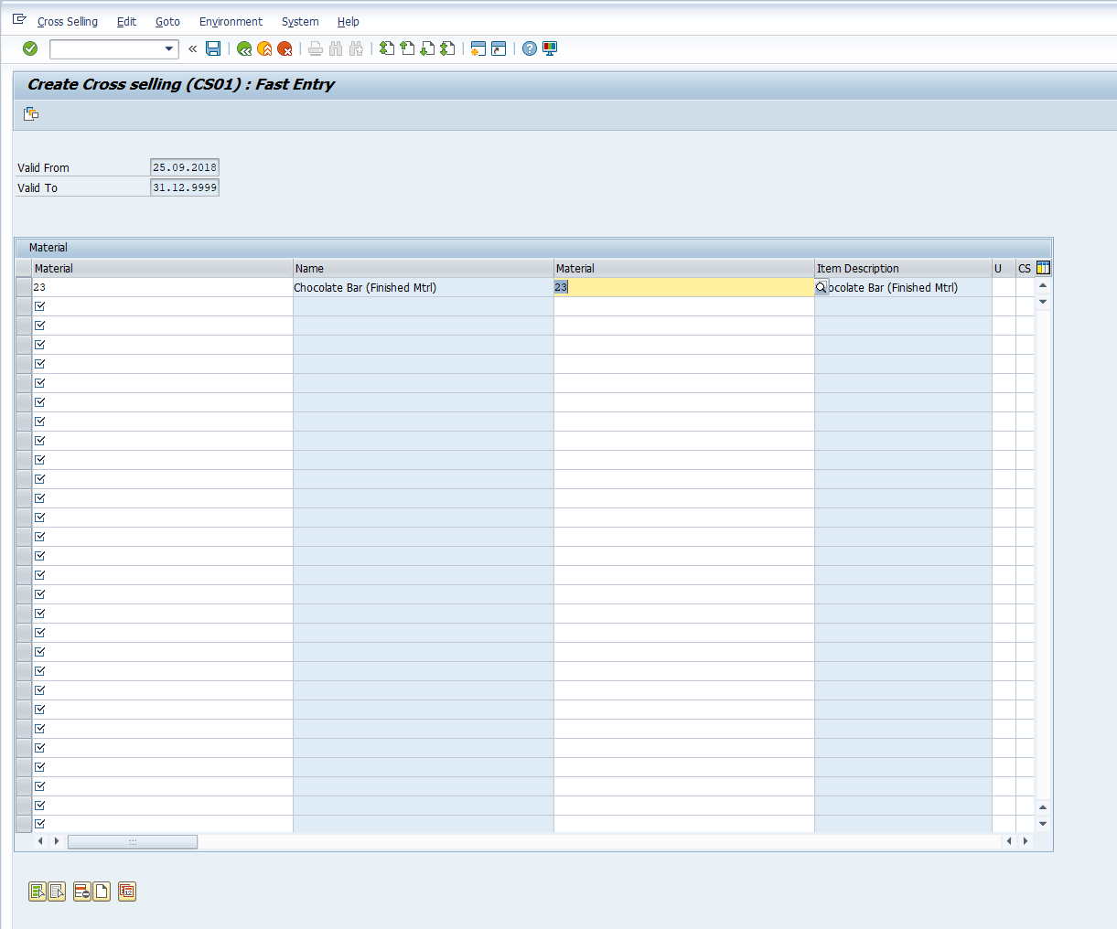 - Creates Cross Selling for a given Material Type between different materials and saves the record. Inputs the data for the different material type from the excel and saves the status message