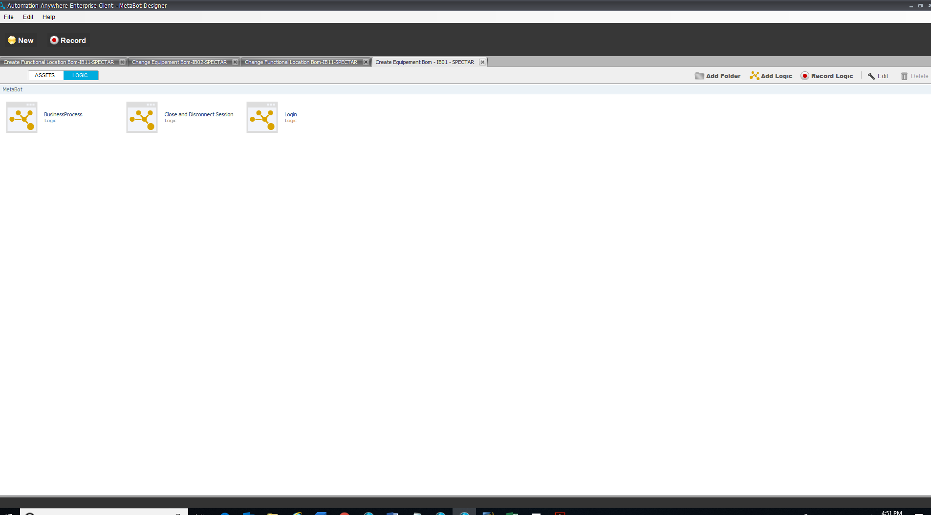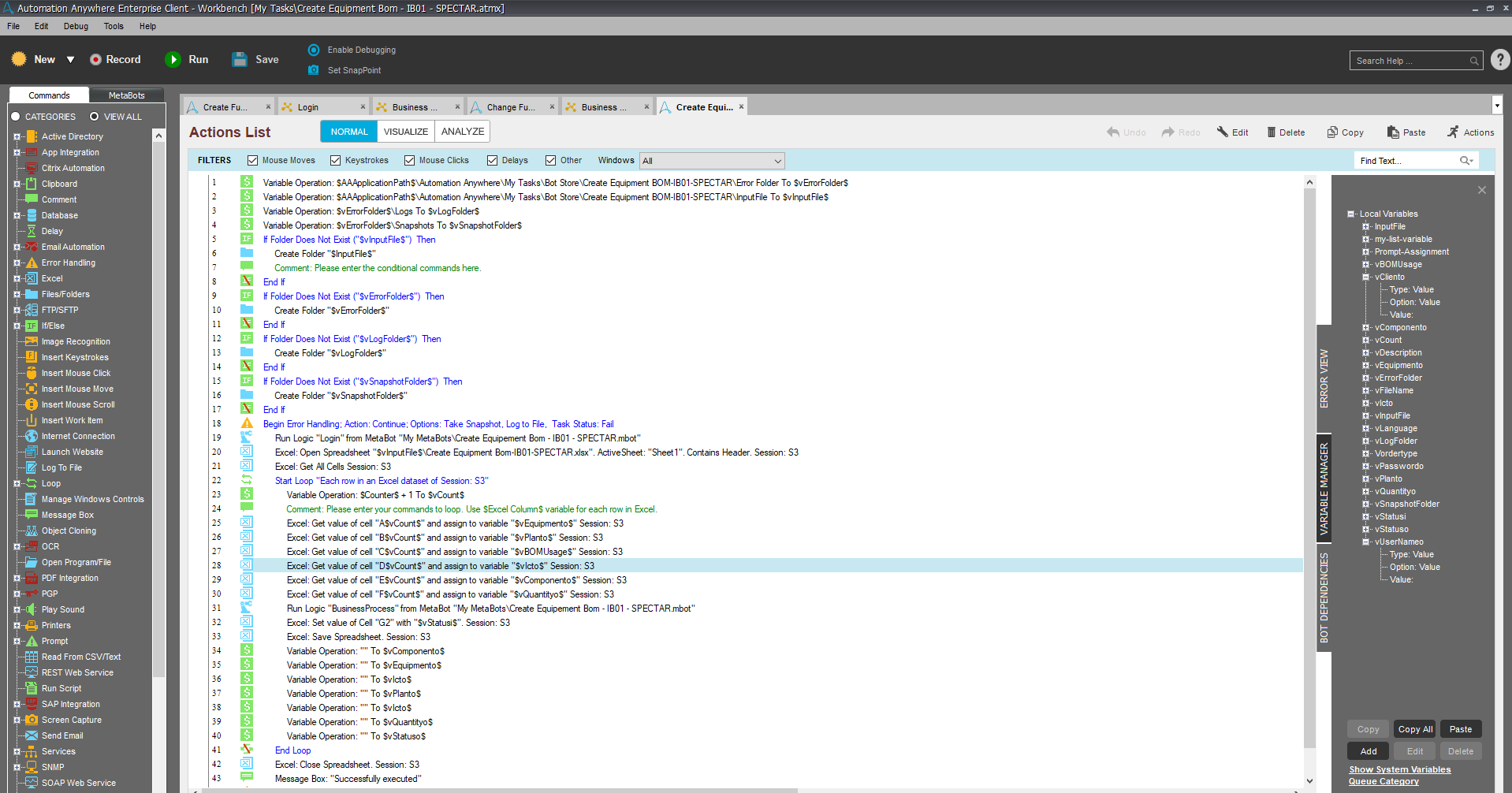 - Inputs: vDescriptiono vUserNameo vPasswordo vCliento vLangugeo vInputFile vCount vEquipmento vPlanto vBOMUsageo vQuantityo vComponento vIcto vErrorFolder vLogFolder vSnapshotFolder
