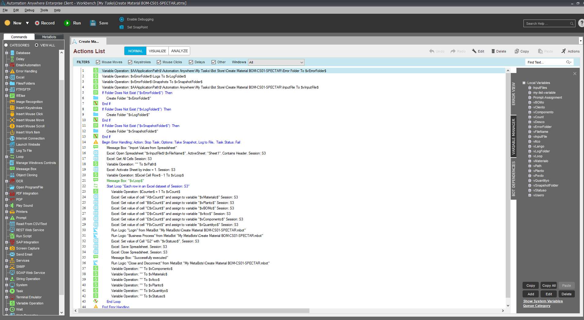 Creates Bill of Materials with the combination of Material, Plant and BOM usage parameters and changes or updates the quantity of the material and saves the changes. Input data provided in the transactions are fetched from the excel and the status is been updated back to the excel.