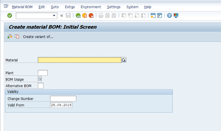 - Inputs: Material, Plant, BOM usage, Item Category, Component, Quantity