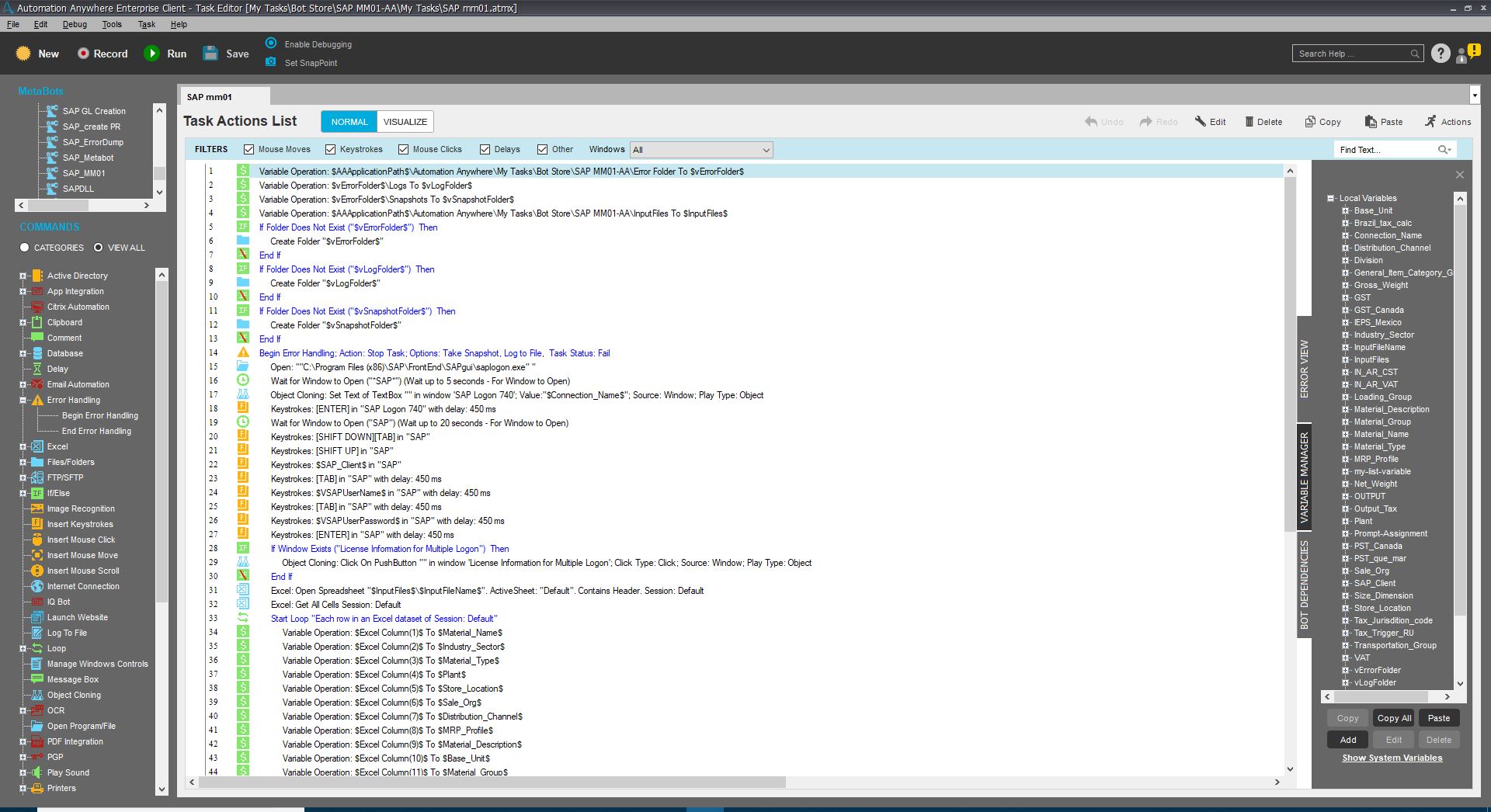 This bot automates the creation of new Material Master records reading data from an Excel sheet.