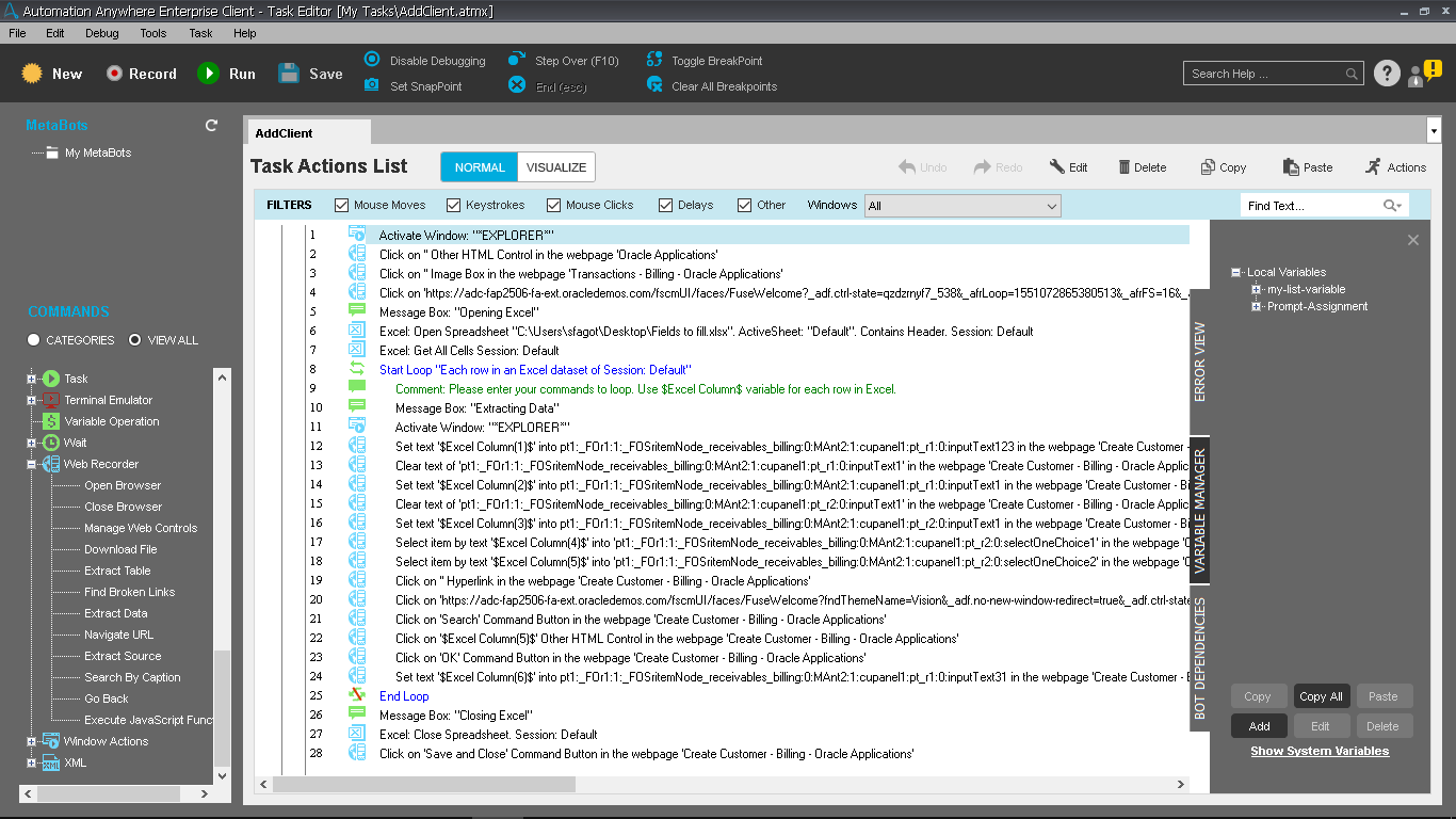 This bot is designed to work for any user by simply plugging this bot into an existing or new task to create a Customer inside Oracle ERP.