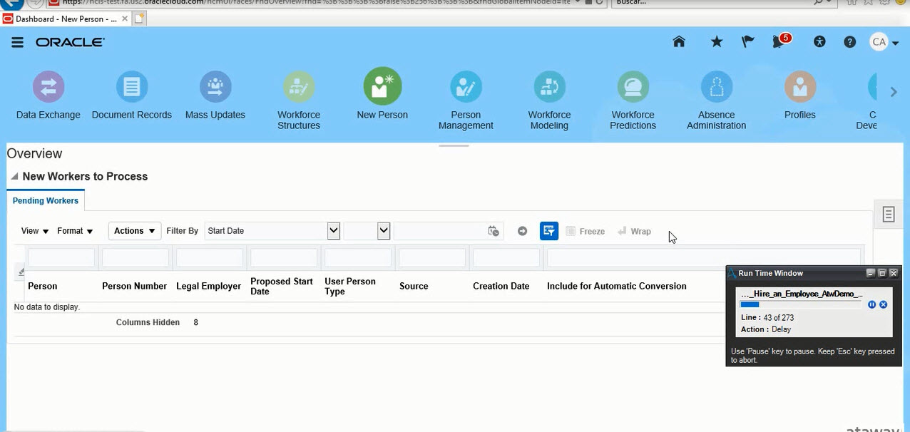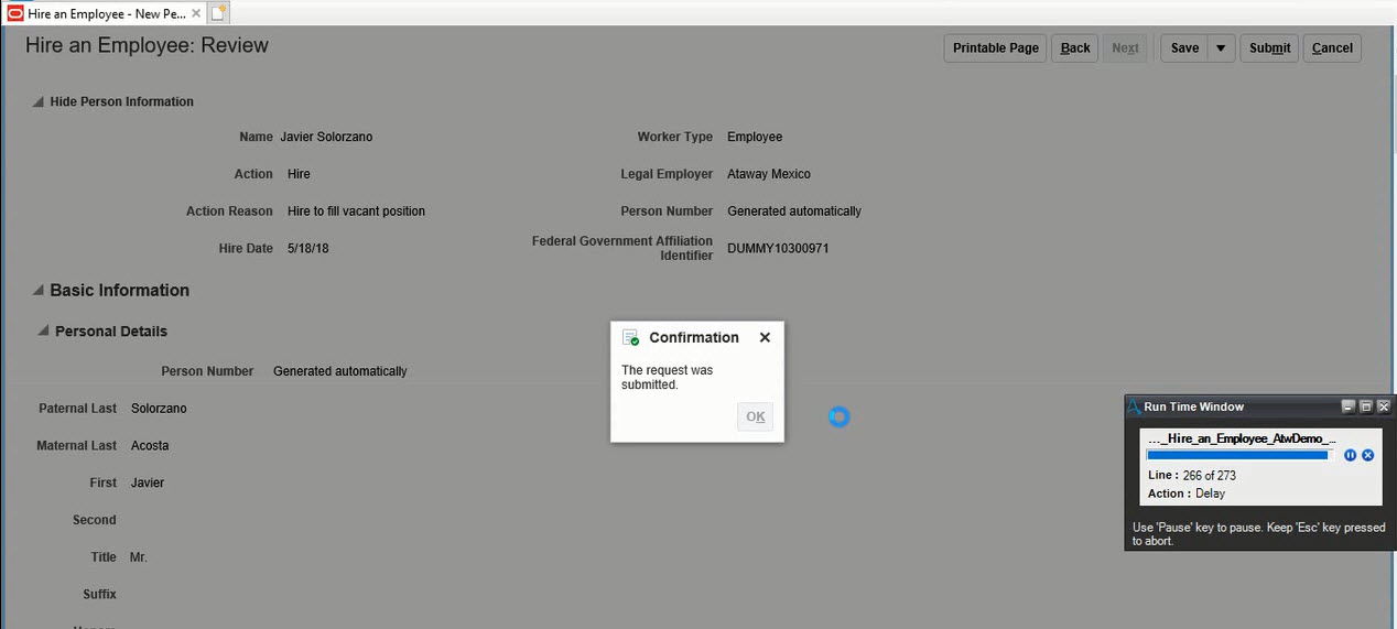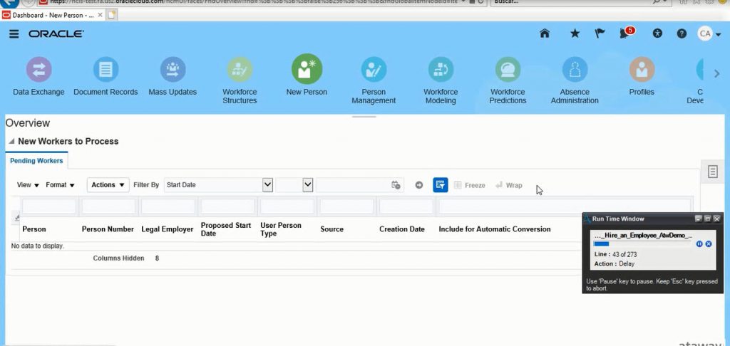 Automate the process of creating new employees in Oracle's HCM Cloud. Provide basic login details and the required information to create new employee - and the bot will take care of the employee creation process for you.