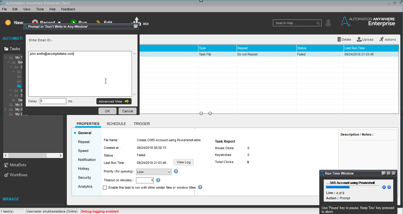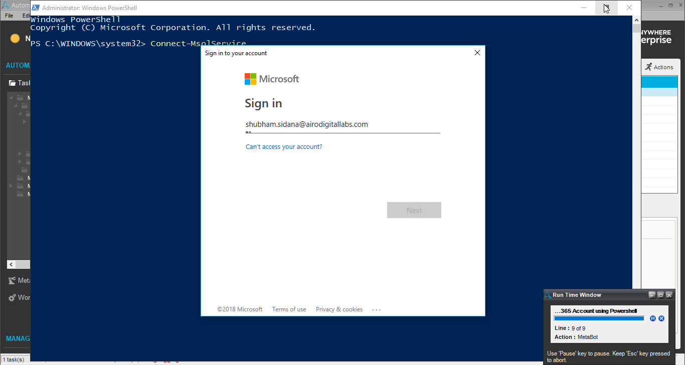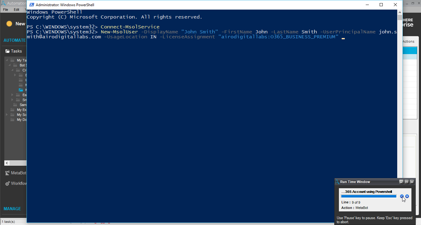 This bot creates Office 365 Email account and assigns license using Powershell.