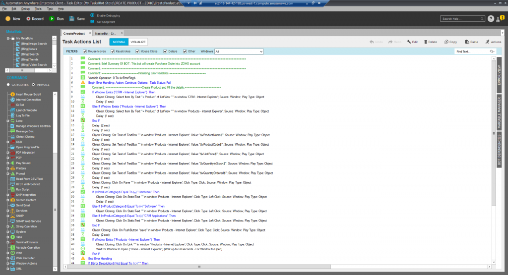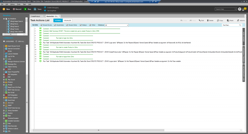 - Required access of ZOHO application, Required Automation run-time client installed, Required all Bots for Create Product process and all this bots should be place in a specific folder.