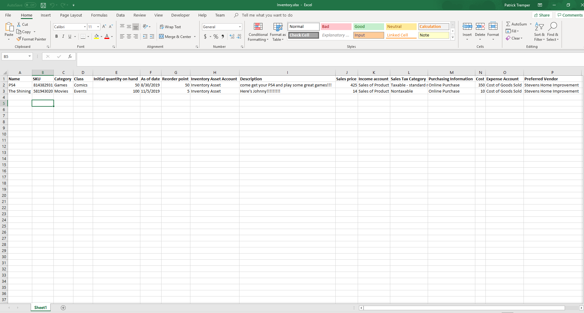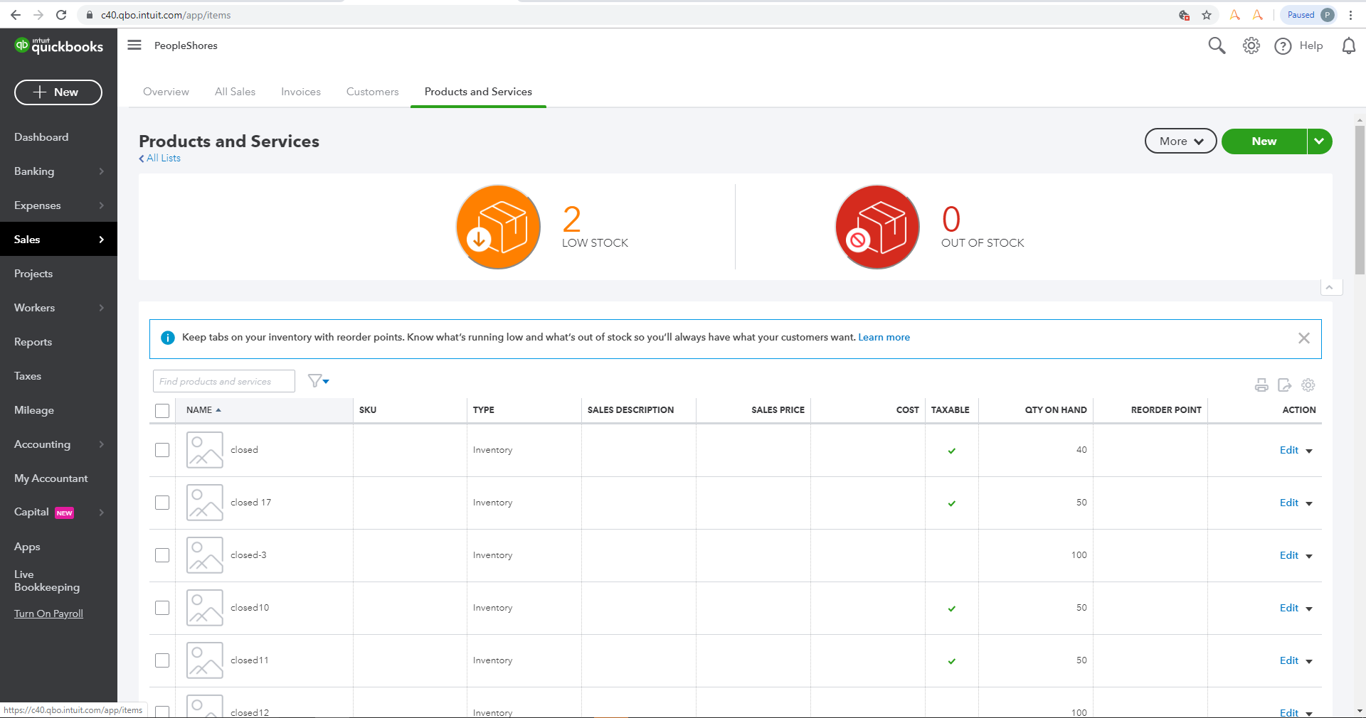 - Reads from an Excel file entitled CreateProductsQuickbooks-PeopleShores.xlsx and clicks on the corresponding object type in QuickBooks