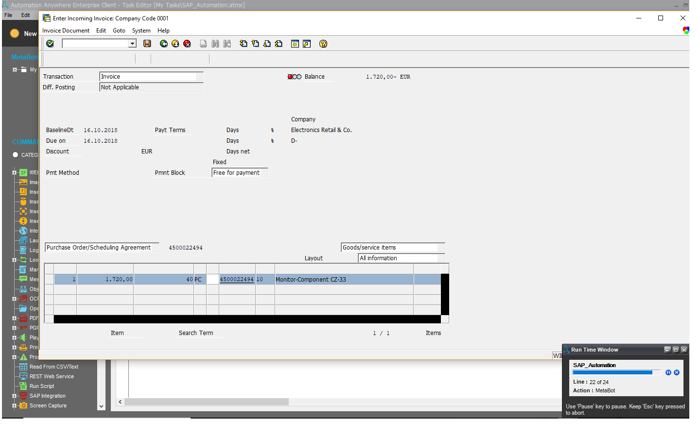 The bot will help to create sales order, goods receipt and invoices in SAP.