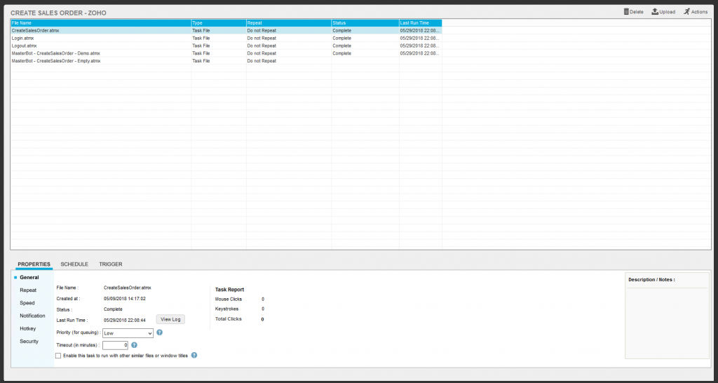 - Required access of ZOHO application, Required Automation run-time client installed, Required all Bots for Create Product process and all this bots should be place in a specific folder.