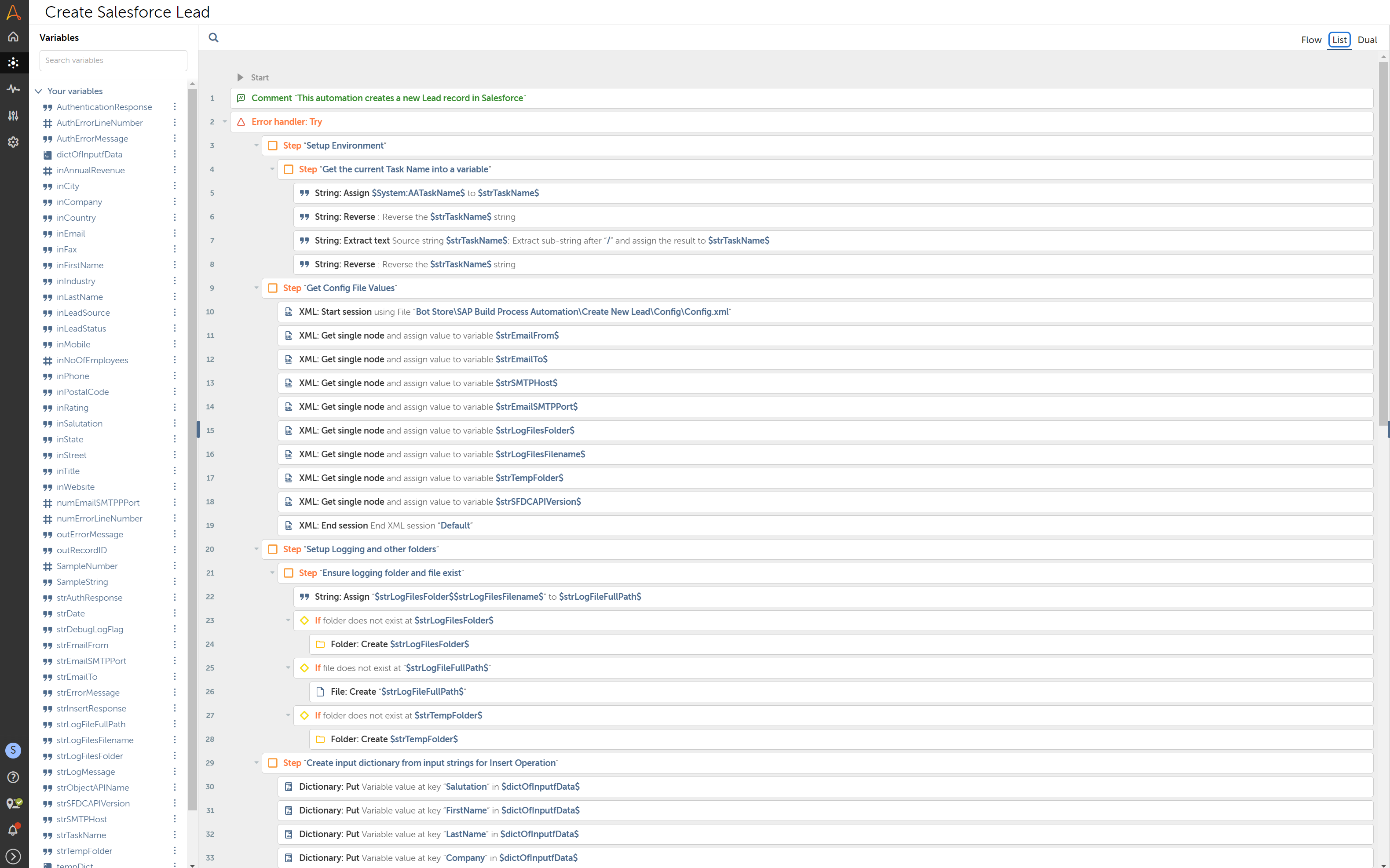 The Create Salesforce Lead bot is intended to simplify the integration of automated business processes from SAP and other systems with Salesforce data