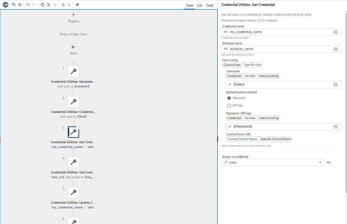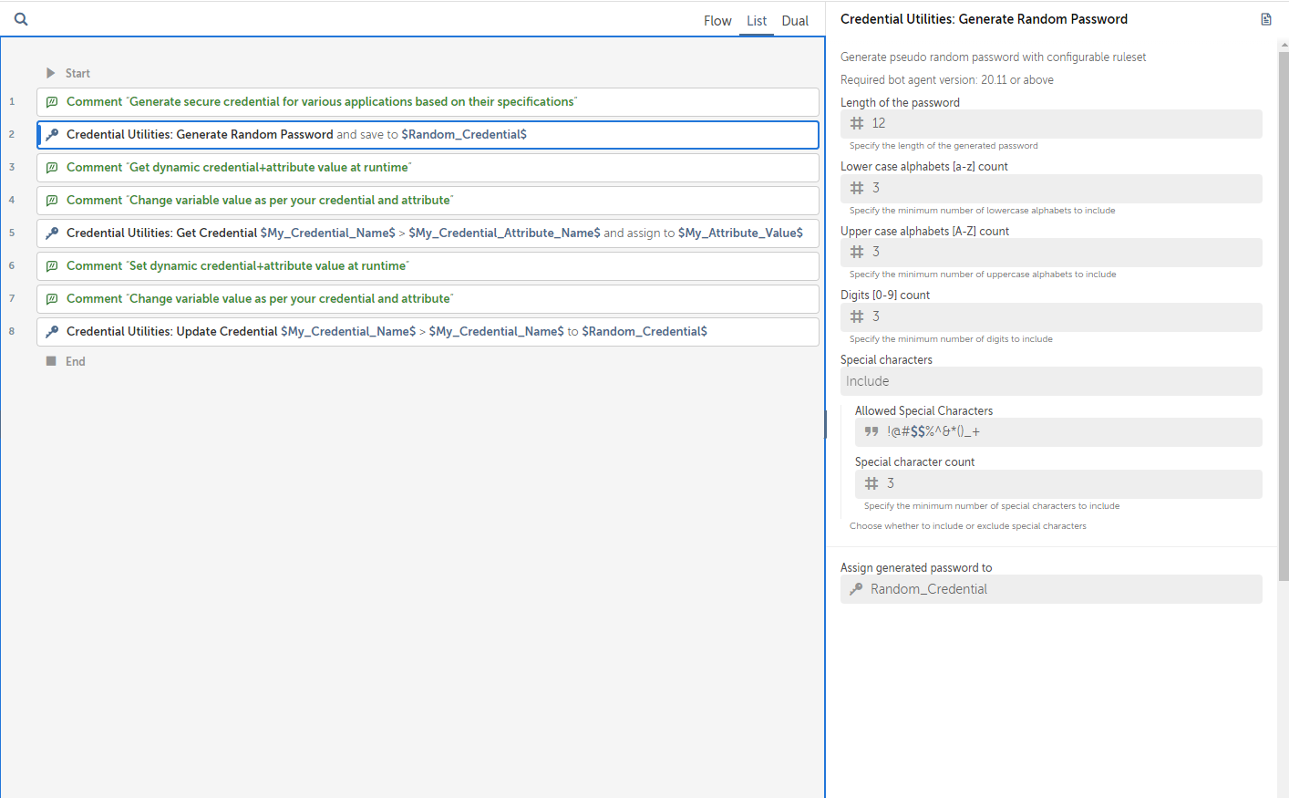This package provides a set of utility functions to enhance the management of credentials in Automation Anywhere. It allows you to generate random passwords with specific rules, retrieve credentials dynamically, list credential attributes, and update credential values. With this package, you can automate the generation and management of credentials, making your bots more robust and secure.