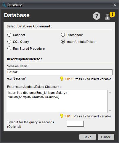 This bot reads data from input files and writes to a database. Connects to the database using database commands from Task console and writes to Db extracting user input from Excel or CSV.