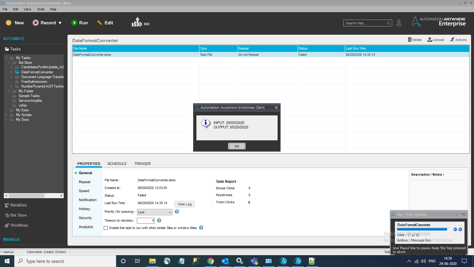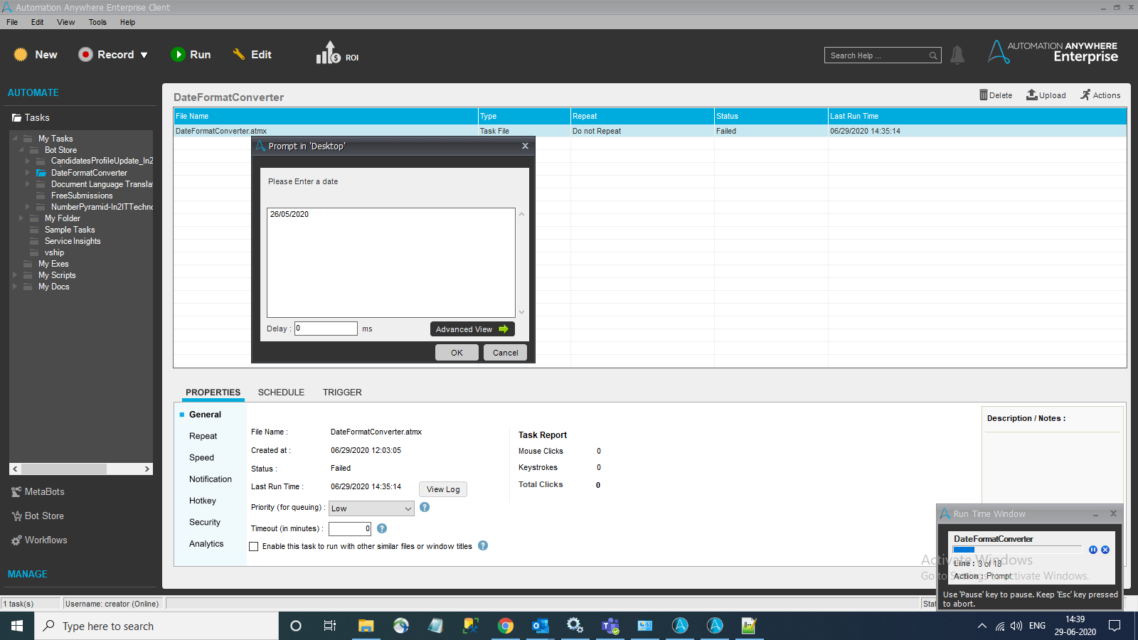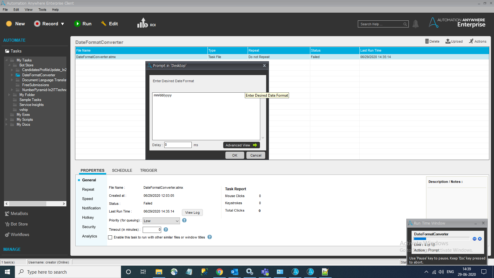 Based on the provided date format and required date format, the bot will execute a script to convert from one format to the other.