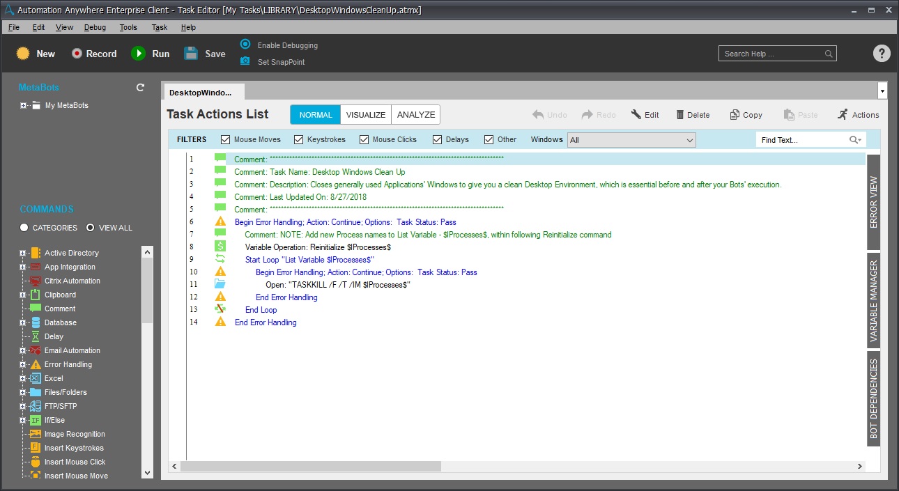 - The bot kills the Application Process directly, thus, avoiding confirmation Dialog boxes which typically interrupt the Window Closing process.