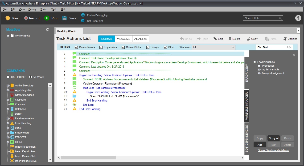 - Use a single list to maintain inventory of Applications whose Windows are to be closed to clean Desktop Environment.