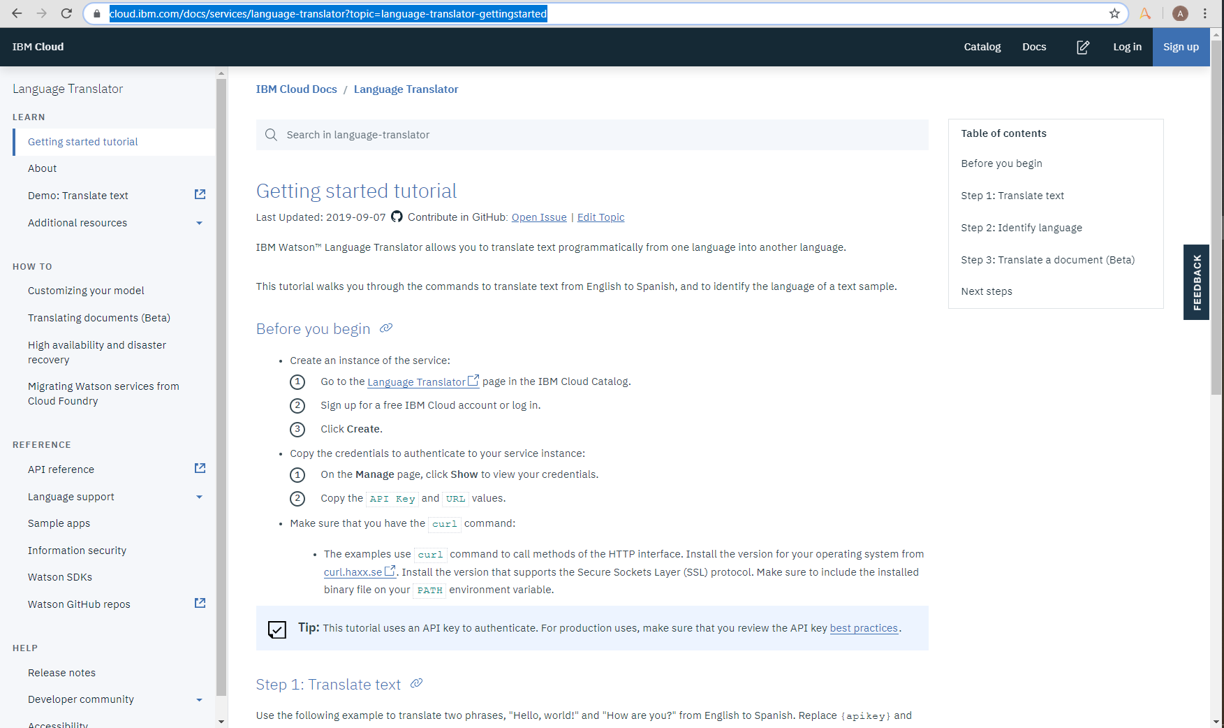 - Sign up for Watson API at https://cloud.ibm.com/catalog/services/language-translator