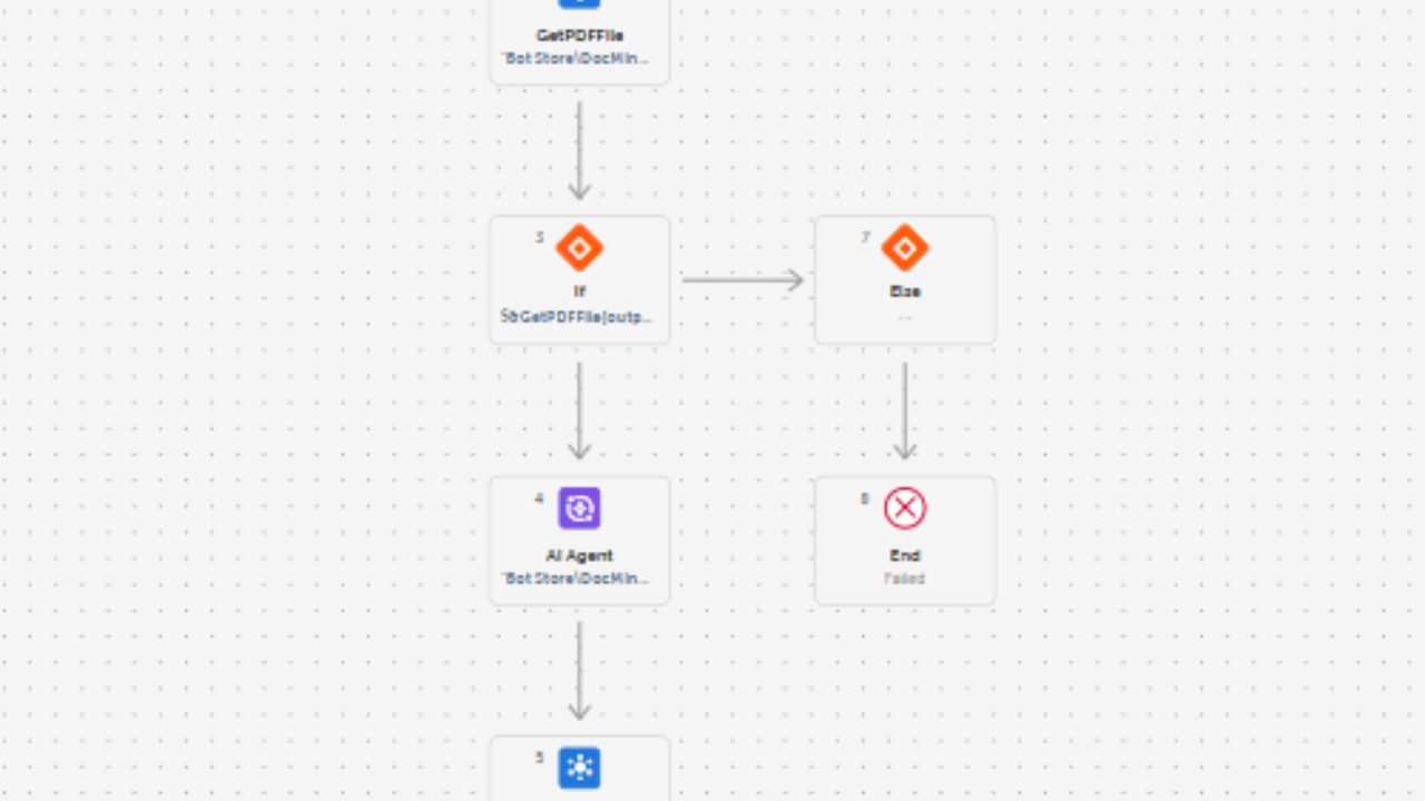 This Automation Anywhere A360 bot streamlines document processing, invoice extraction, and report generation through intelligent AI agents. It begins with user-triggered input of a PDF document, such as scanned invoices or native, uploaded directly into the system.