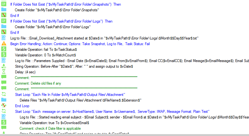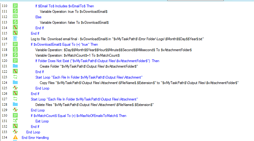 The bot will loop through emails based on the filters supplied and downloaded attachments.