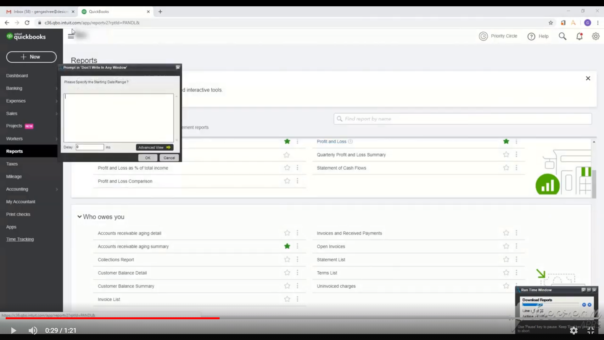 This Bot will login to your Quickbooks account, prompts the user for the date range for which the Profit and Loss report is to be generated and downloaded