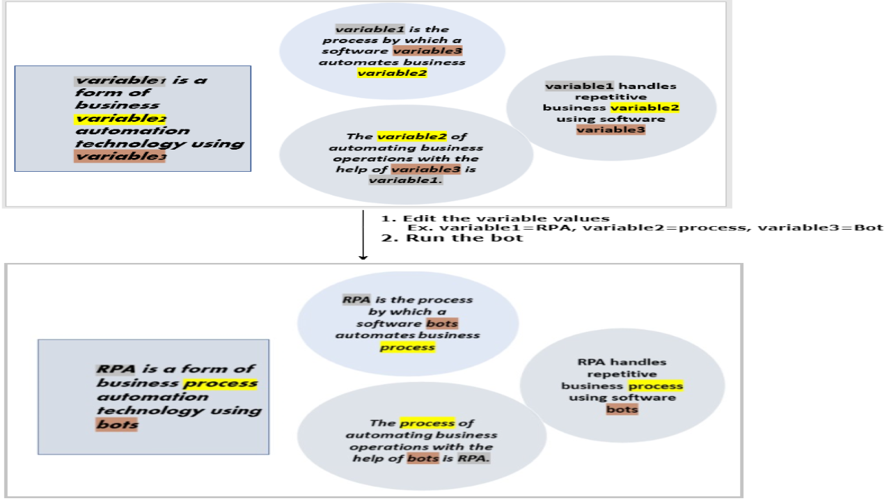 Currently, this bot is customized to replace the variables in 4 (or less) text boxes present in the PPTX and can replace a maximum of 3 variables per text box.
