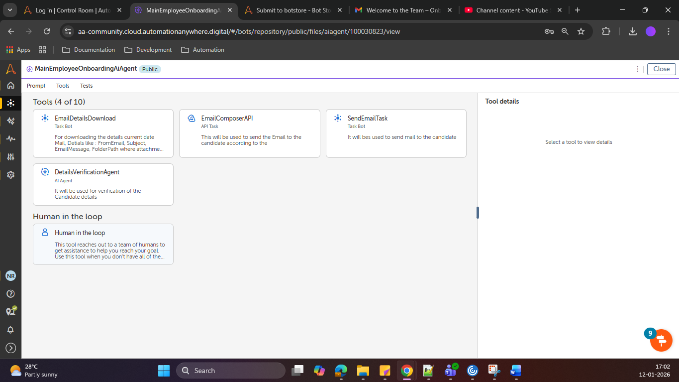 The project is an AI-powered Employee Onboarding Automation system designed to streamline and simplify the onboarding process for HR teams. The system automatically downloads the latest emails and attachments from the HR mailbox and uses AI to understand whether an email is related to employee onboarding. Relevant emails are processed further, while non-onboarding emails are filtered out.