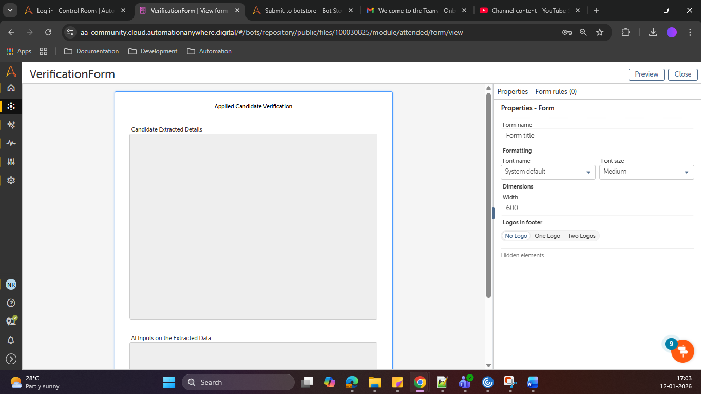 - Forms for Human Validation.