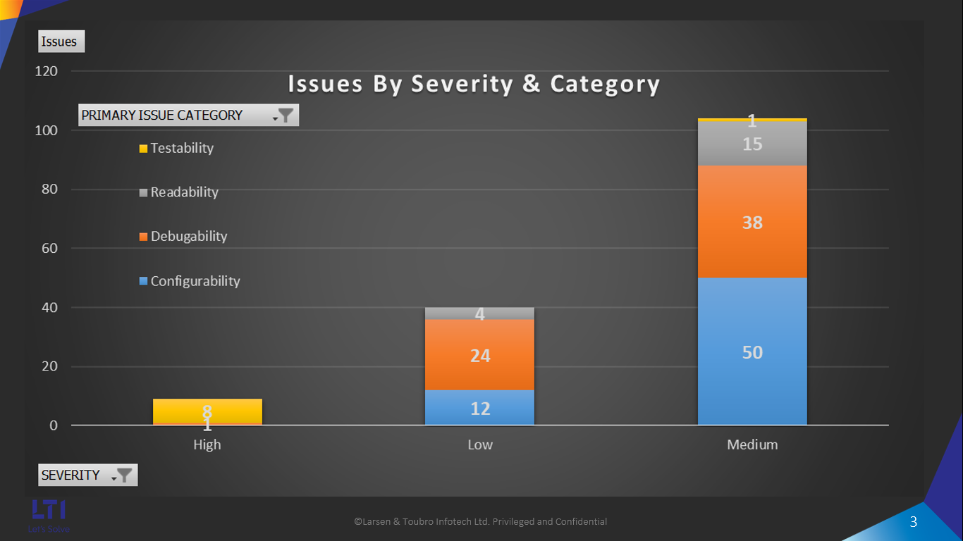 By reducing the time/manual effort to analyze code, LTI’s eCAB is able to help reduce the overall cycle time to automate a process and shorten the “time to value” – i.e. the automation deployed to production and delivering business value.
