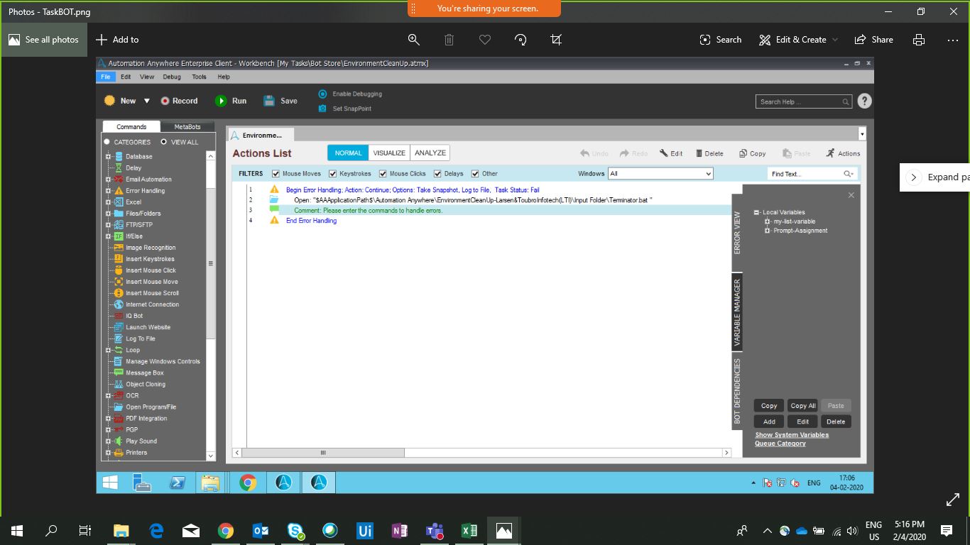 This Bot can clean-up the environment by killing the apps IE, SAP and Excel.