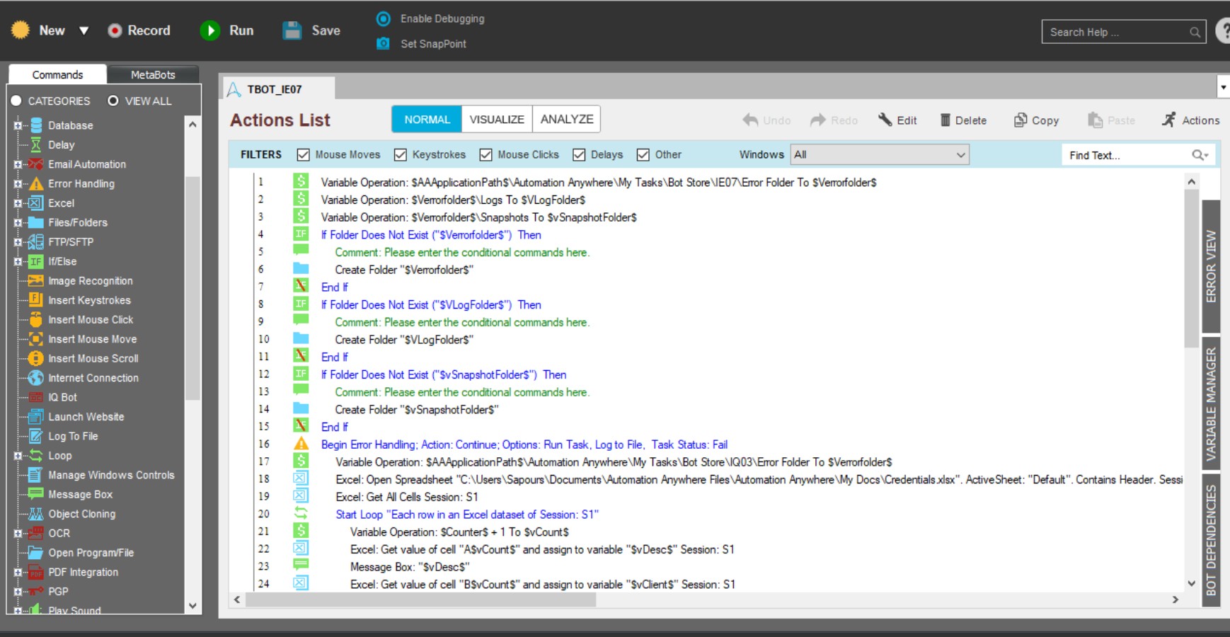- Read the data from an Excel sheet and use that data as an input for the bot